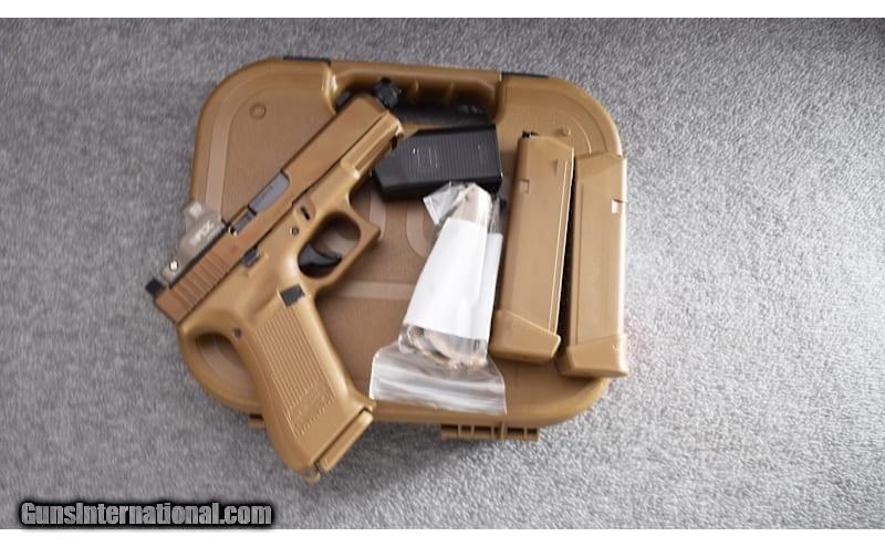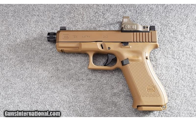 Description: This Glock 19X in 9mm Luger remains in excellent condition. It has a 4.5" threaded barrel with thread protector. The entire gun is finished in a flat dark earth (FDE) finish. An Eotech EFLX reflex sight is attached to the slide. This pistol will ship in the original case along with three magazines, loader and interchangeable back straps. 9mm Luger SOLD Metal Condition: Excellent Bore Condition: Excellent Barrels: 4.5" Threaded Triggers: Factory Safe Action Butt Pad: Textured FDE Polymer 5th Gen Grip Weight: 26 Oz Sights: Eotech EFLX Red Dot Sight Item Location: Wheeling |