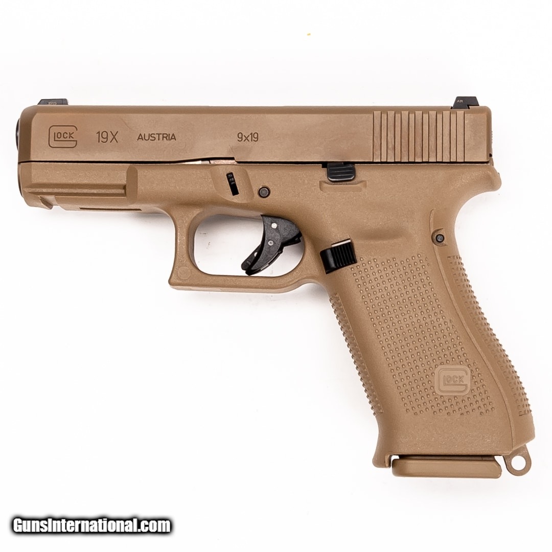 Description: Guns Listing ID: 328807 A semi-automatic handgun chambered in 9mm, this G19X is a crossover that combines features from two of Glock's most popular pistols. Accurate, durable, and reliable, it is built using the full-size polymer frame of the G17 Gen 5 and the slide with dehorned nose profile from the G19 Gen 5. Other features include a Glock Marksman barrel, flared magwell, and ambidextrous slide stop levers. This Glock 19X is in very good condition, with only a couple of minor marks on the top of the slide. It has night sights and a lanyard loop and comes with the original case, manual, one 17-round magazine, seven 19-round magazines, backstraps, and a loader. SOLD Manufacturer: GLOCK Model: 19X Caliber Info: 9MM LUGER Condition: Used - Certified Barrels: 4 BARREL Finish: FDE |