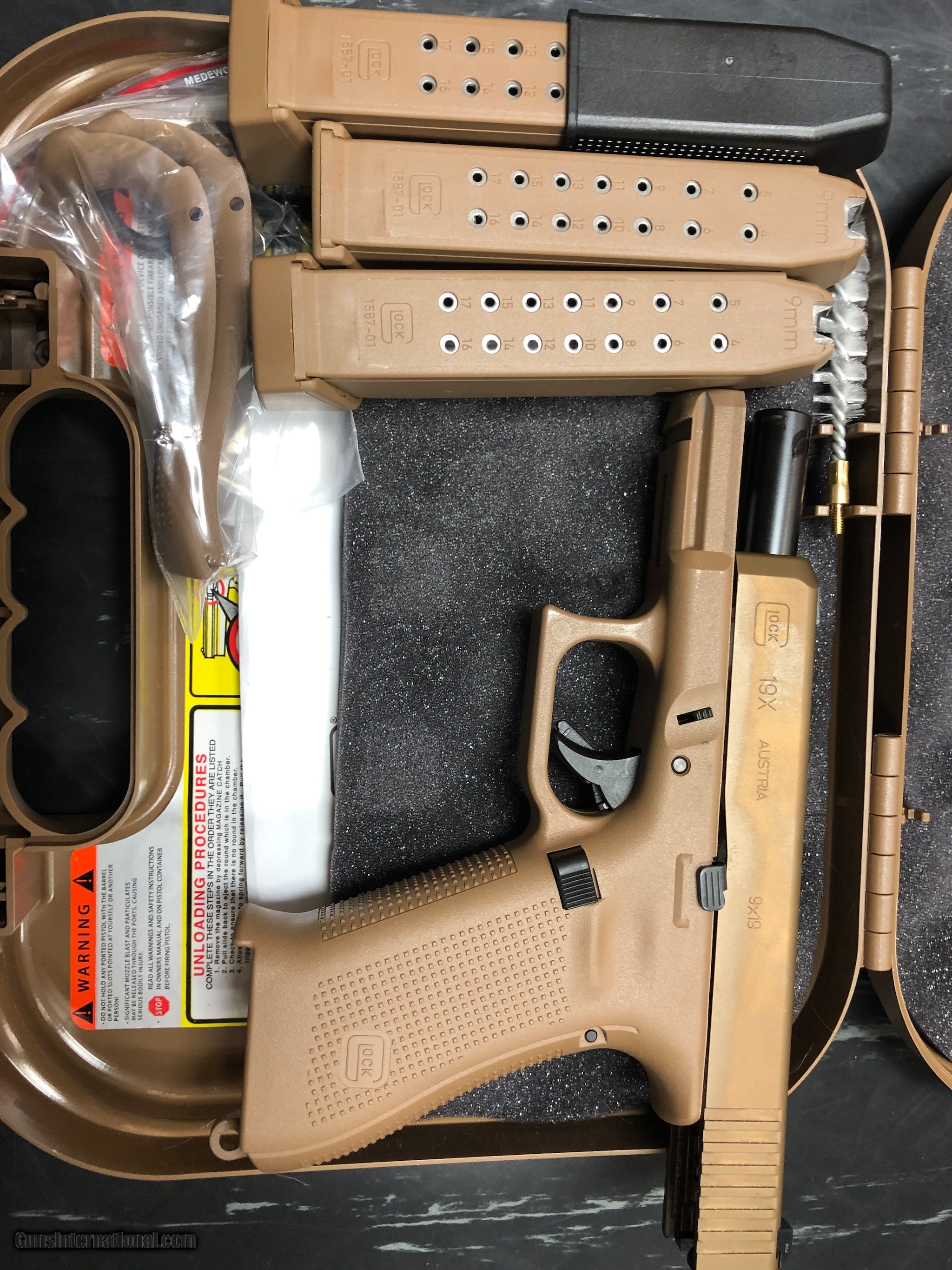 Description: Guns Listing ID: 653667 Comes with three mags Includes speed loader Original hard shell case Two interchangeable grips SOLD Manufacturer: GLOCK Model: 19x Caliber Info: 9 MM Condition: Used - Non-Certified Barrels: 4.02 BARREL Finish: COYOTE |