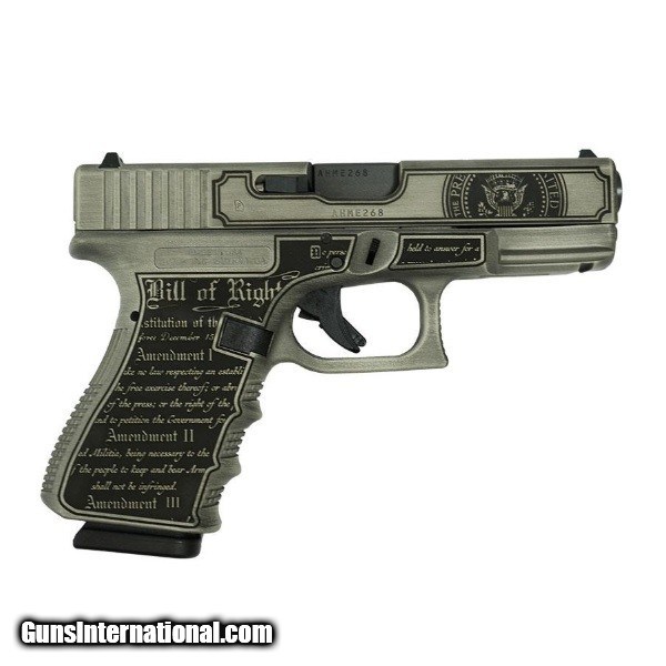 Glock G19 Gen 3 9mm 4" Trump 2024 Crushed Silver Distressed GLUI1950203T24