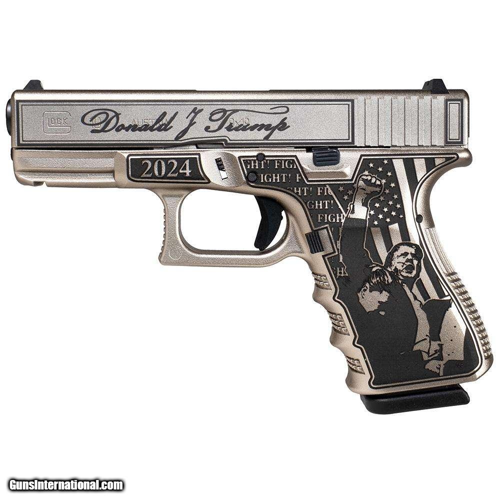 Description: Guns Listing ID: 480567 GLOCK G19 GEN 3 COMPACT 9MM 4\" BARREL 2/15 ROUND USA Trump Fight Engraved Silver SOLD Manufacturer: GLOCK Model: G19 GEN 3 Caliber Info: 9MM LUGER (9x19 PARA) Condition: new Barrels: 4" BARREL Action: SEMI AUTOMATIC Finish: silver |