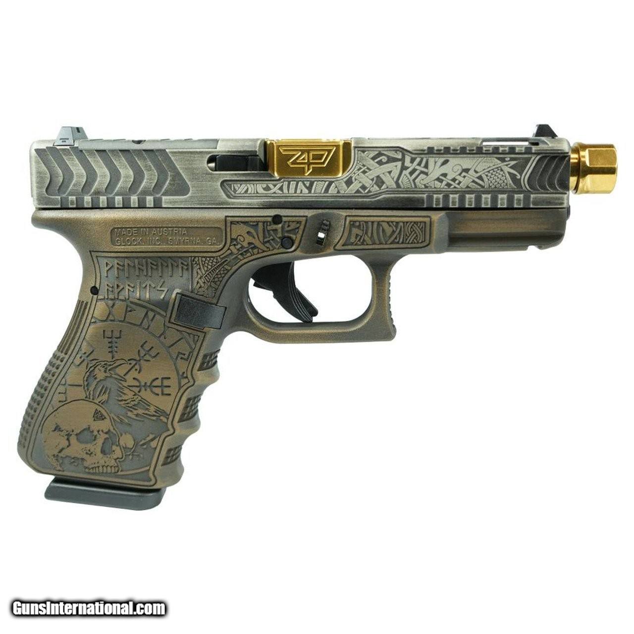 Description: Guns Listing ID: 256833 Glock G19 AUS Gen 3 9mm, 4.60\" Threaded Barrel, \"Viking Engraved Colonial Brown\", 15 Round It‚s ideal for a versatile role thanks to its reduced dimensions when compared to the standard sized option. In addition to its use as a conventional service pistol, it is ideal for use as a backup weapon or for concealed carry purpose. SOLD Manufacturer: GLOCK Model: G19 GEN 3 Caliber Info: 9MM LUGER (9X19 PARA) Condition: new Barrels: 4.6" BARREL Action: SEMI AUTOMATIC Finish: VIKING ENGRAVED COLONIAL BROWN Weight: 1.9 lbs. |