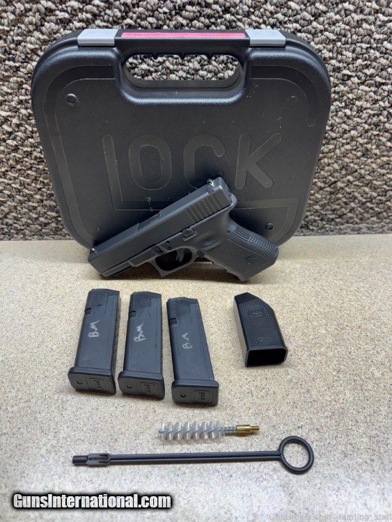 Description: Guns Listing ID: 473699 This listing is for a USED Glock 19 Gen 3 Compact 9mm Black Finish PI1950203 4.02\" BBL 15+1. This is a used gun, it has been fired and will have residue present. This Glock 19 Gen 3 is chambered in 9mm, and it will hold 15 rounds in the magazine. This pistol comes with a 4.02 inch barrel. It comes equipped with a fixed front sight, and a fixed rear sight. There are light scratches and scuff marks present around the slide. All three magazines have “BM” marked on them. The action appears to be in good condition, the finish appears to be in good condition, and the bore appears to be in good condition. This pistol comes with three 15 round magazines, a speed loader, a cleaning rod/brush, and the hard case. This would be a great concealed carry pistol. ** DISCLAIMER** THIS FIREARM HAS NOT BEEN TEST FIRED*** SOLD Manufacturer: GLOCK Model: G19 GEN 3 (AU) Caliber Info: 9MM LUGER (9X19 PARA) Condition: Used - Non-Certified Barrels: 4.02 BARREL Action: STRIKER Finish: BLACK Weight: 1.48 LBS. |