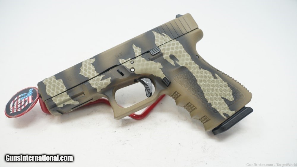 Description: Guns Listing ID: 652235 The GLOCK G19 Gen 3 chambered in 9mm Luger has earned a legendary reputation as one of the most reliable handguns on the planet thanks in part to decades of service in the most grueling conditions. With an upgraded grip texturing and a universal mounting rail, the Gen 3 Glock 19 is well equipped for whatever situation you might find yourself in. This G 19 has a Custom Cerakote finish in Reptile Camo. SOLD Manufacturer: GLOCK Model: G19 GEN 3 Caliber Info: 9MM LUGER (9X19 PARA) Condition: new Barrels: 4 BARREL Finish: CAMO |