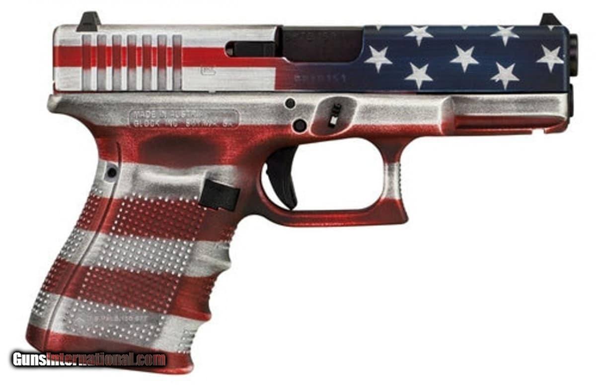 Description: Guns Listing ID: 664796 G19 GEN 3 COMPACT 9MM 4\" BARREL 2/15RD US FLAG SOLD Manufacturer: GLOCK Model: G19 GEN 3 Caliber Info: 9MM LUGER (9X19 PARA) Condition: new Barrels: 4 BARREL Finish: AMERICAN FLAG |