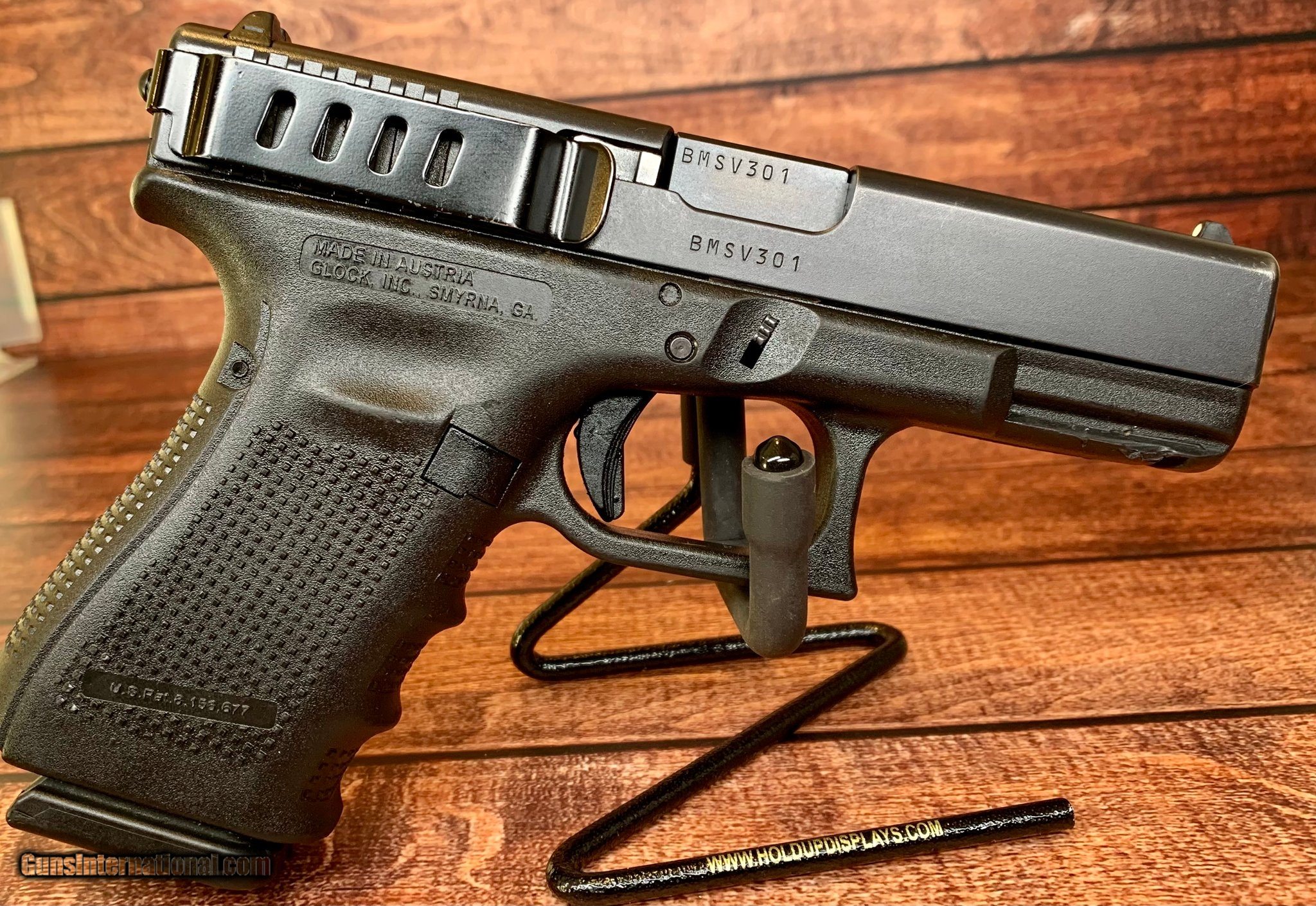 Description: Guns Listing ID: 478078 The Glock 19 Gen4, a semi-automatic pistol that stands as an iconic symbol in the world of firearms. Known for its remarkable performance and steadfast reliability, this handgun is perfect for range enthusiasts, ideal for home defense, and an excellent choice for concealed carry. Collectors and first-time buyers alike will appreciate the Gen4‚‚s excellent condition, exhibiting some minor handling marks and boasting a bright, clean bore with sharp rifling. Firearm comes with one (1) 15 round magazine, attached metal conceal carry clip and a soft firearm case. Manufactured by the renowned Austrian company Glock GmbH, the Glock 19 Gen4 belongs to the celebrated Glock 19 series, initially launched in 1988. The Gen4 variant, which debuted in 2010, introduced several enhancements over earlier models. These include a modular backstrap design for customizable grip comfort, a larger reversible magazine release for swift reloading, and a dual recoil spring assembly to minimize recoil and boost durability. Chambered in 9mm Luger, this model is celebrated for its straightforward design, reliability, and extensive use by law enforcement and civilians worldwide. Its standard 15+1 round capacity, coupled with a compact frame, makes it an optimal choice for concealed carry and duty applications. The Glock 19 Gen4‚‚s black finish is characteristic of Glock‚‚s pistols, offering a durable and corrosion-resistant coating. This pistol is not only a testament to Glock‚‚s engineering prowess but also a versatile option for firearm enthusiasts, security professionals, and everyday carriers. The 9mm chambering delivers a perfect mix of stopping power with manageable recoil, while its high capacity ensures readiness in any scenario. Specifications Manufacturer Glock Model 19 Caliber 9mm Luger Overall Condition Very Good Bore Condition Excellent Action Striker Capacity 15 SOLD Manufacturer: GLOCK Model: G19 GEN 4 Condition: Used - Non-Certified Barrels: 4 Gauge Info: 9MM LUGER (9x19 PARA Finish: black |