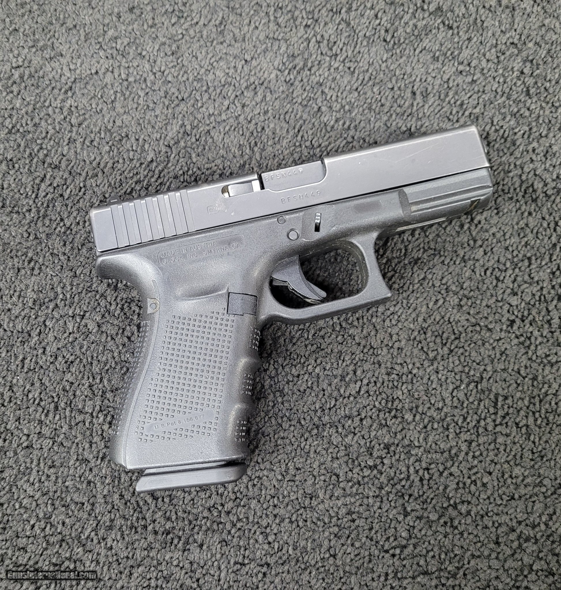 Description: Guns Listing ID: 585773 Glock 19 gen 4 9mm one fifteen round magazine cleaned and serviced SOLD Manufacturer: GLOCK Model: G19 GEN 4 Caliber Info: 9MM LUGER (9x19 PARA) Condition: Used - Non-Certified Barrels: 4.5" BARREL Action: SEMI AUTOMATIC Finish: black anodized |