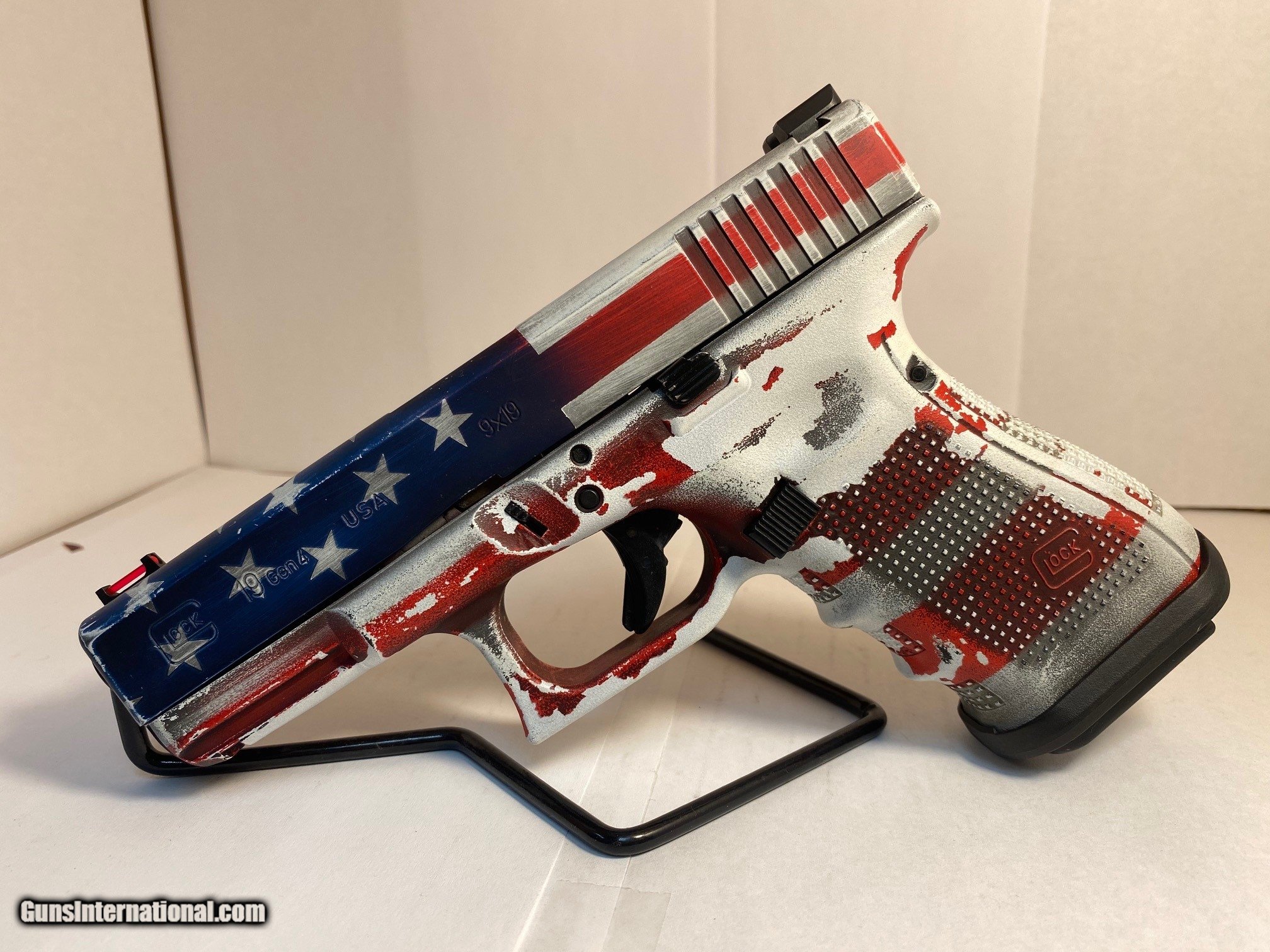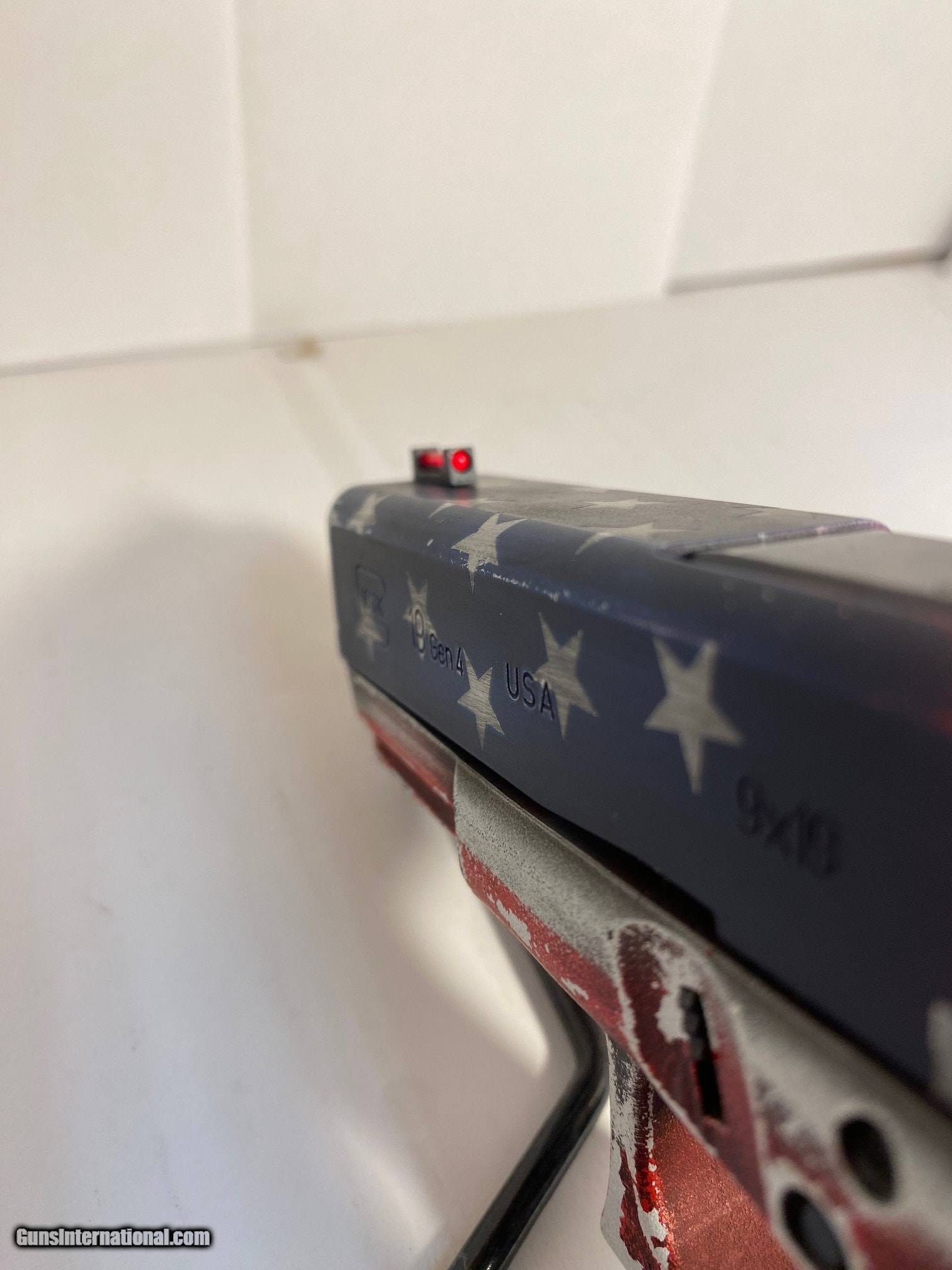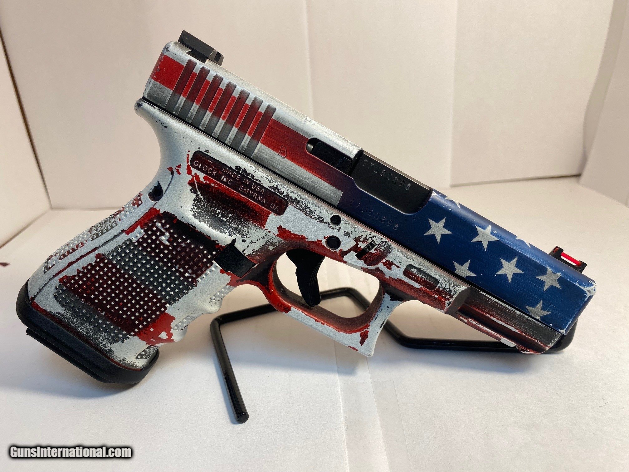 Description: Guns Listing ID: 774470 Here is your second chance to secure an American made Glock 19 Gen4 with the United States Flag design on!! This package comes with the original box and one magazine. SOLD Manufacturer: GLOCK Model: G19 GEN 4 Caliber Info: 9MM LUGER (9X19 PARA) Condition: Used - Non-Certified Barrels: 4.02 BARREL Finish: AMERICAN FLAG GRAYSCALE CERAKOTE |