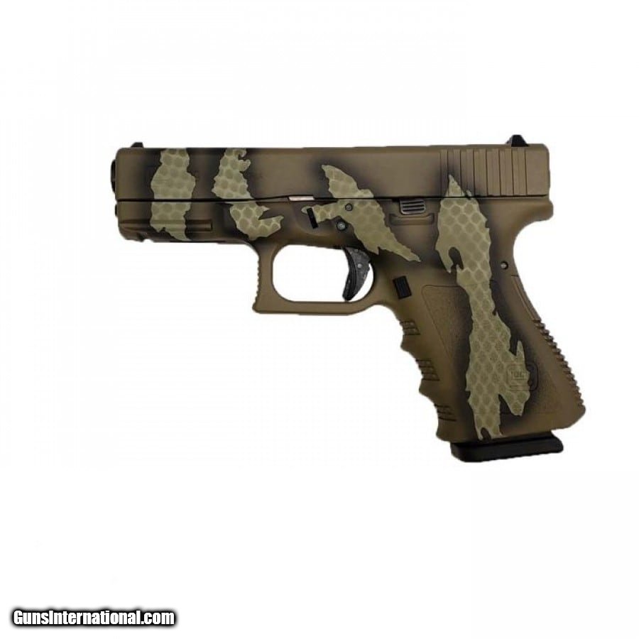 Description: Guns Listing ID: prod154581 Glock G19 Gen 5 Compact 9mm 4.02\" 15+1. Custom Reptile Cerakote design. SOLD Manufacturer: GLOCK Model: G19 Gen 5 Caliber Info: 9MM LUGER (9X19 PARA) Condition: new Barrels: 4.02 BARREL Finish: CUSTOM |