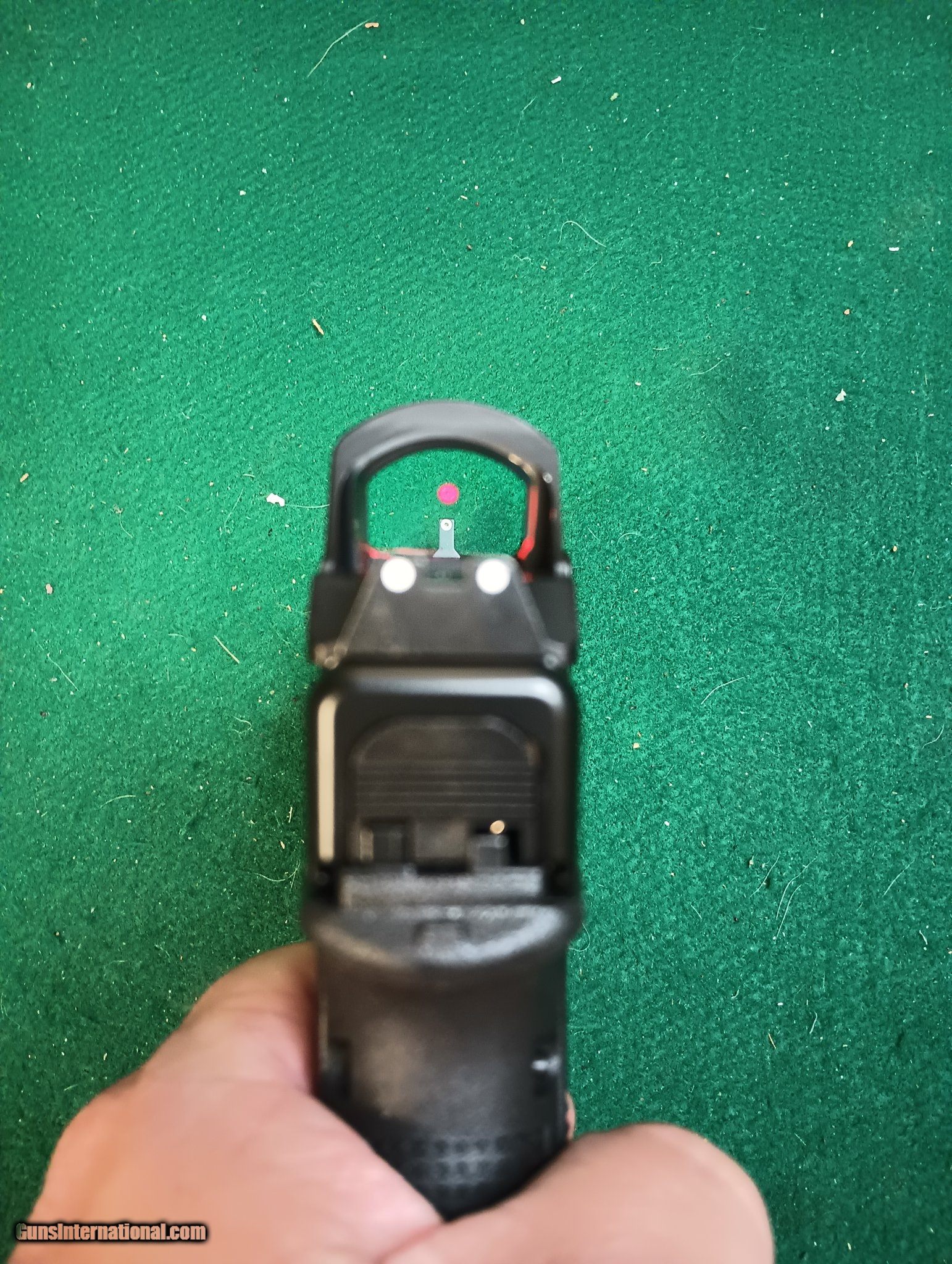Description: Guns Listing ID: 1379468 This Glock 19 MOS is topped with tall sights and a Holosun HS507C. It is in excellent condition and comes with three 15rd. magazines. SPECS: Brand: Glock Category: Pistols Series: Gen5 Compact MOS Caliber: 9mm Luger Barrel Length Range: 4\" to 4.99\" Model: G19 Capacity: 15+1 Action: DAO Frame Finish: Black OAL: 7.28\" Frame Material: Polymer Hand: Right Sight Style: Fixed Slide Finish: Black nDLC Slide Material: Steel Slide Description: Serrated Black nDLC Steel with MOS Cuts Gun Platform: Glock Component Compatible Style Magazine Type: OEM Grips: Black Rough Texture Interchangeable Backstraps Sight Configuration: Fixed Includes: Mag Loader / 3 Mags / Cleaning Set / Pistol Case / Backstrap Set / Cable Lock Safety: Trigger / Firing Pin / Drop Barrel Description: Glock Marksman (GMB) Barrel Length: 4.02\" Max Capacity: 15 Weight: 30.16 oz Frame Description: Polymer Frame w / Picatinny Rail SOLD Manufacturer: GLOCK Model: G19 GEN 5 MOS (AU) Caliber Info: 9MM LUGER (9X19 PARA) Condition: Used - Non-Certified Barrels: 4.02 BARREL Finish: BLACK |