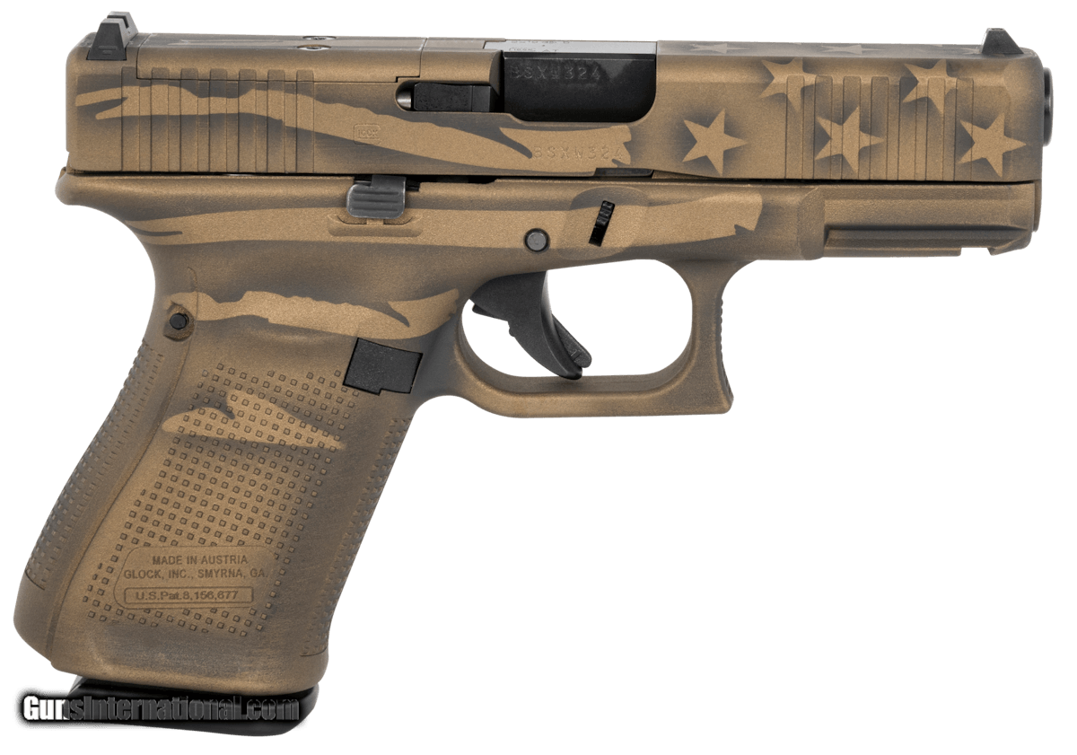 Description: Guns Listing ID: 465357 The G19 Gen5 features a no finger grooved, multiple backstrapped, rough textured frame with hundreds of miniature spikes which results in remarkable traction for extreme environments and gloved operators. The frame also features a smooth trigger, reversible mag release, and ambidextrous slide stop. The magazine comes with a floor plate which is extended at the front for faster magazine change, and a orange follower, while the flared mag-well makes it easier to funnel the magazine into the mag-well. Glock‚‚s nDLC finish provides a tougher, more durable protection against corrosion and scratching. The Glock Marksman barrel features a barrel rifling which delivers improved accuracy SOLD Manufacturer: GLOCK Model: G19 Gen 5 MOS Caliber Info: 9 MM LUGER Condition: new Barrels: 4.02" barrel Finish: BLACK/COYOTE BATTLE WORN FLAG CERAKOTE |