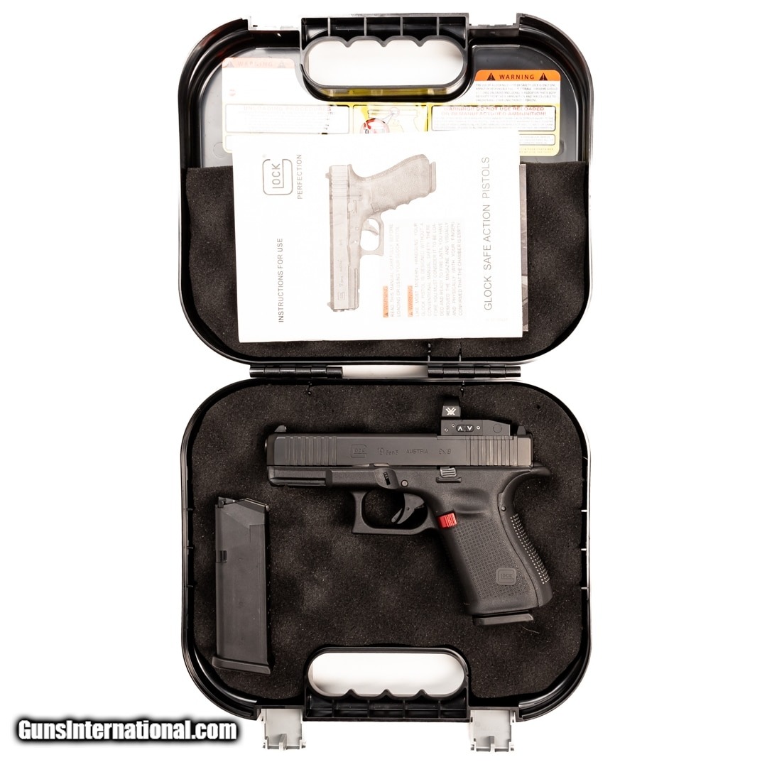 Description: Guns Listing ID: 896395 The Glock 19 Gen 5 MOS (Modular Optic System) is the newest variation of the Glock 19, with additional cuts in the slide for red dot sights. The Glock 19 is a world-renowned handgun that’s popular for everything from duty use to concealed carry. This G19 Gen 5 MOS is equipped with a Vortex Venom 3 MOA red dot and an aftermarket red mag release. Purchase includes a Glock case, manual, and two 15-round magazines. Get the best bang for your buck when you get a Certified Used Firearm . When you see the Certified Used stamp on any of our firearms, you can be confident that you’re getting exactly what you want – a gun only in very good to excellent condition and held to the highest quality standard. All Certified Used Guns come with a ‘no questions asked’ return policy . PLUS, ALL CERTIFIED USED GUNS SHIP FREE! SOLD Manufacturer: GLOCK Model: G19 GEN 5 MOS Caliber Info: 9MM LUGER (9X19 PARA) Condition: Used - Certified Barrels: not specified Finish: BLACK |