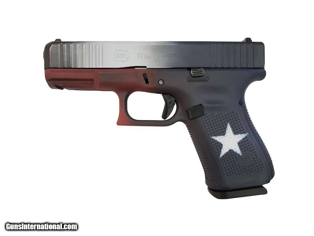 Description: Guns Listing ID: 560341 GLOCK G19 GEN 5 9MM TEXAS FLAG 15+1 Distressed Red White Black and Blue Texas Flag Cerakote SOLD Manufacturer: GLOCK Model: G19 GEN 5 Caliber Info: 9MM LUGER (9X19 PARA) Condition: new Barrels: 4.02 BARREL Finish: DISTRESSED |