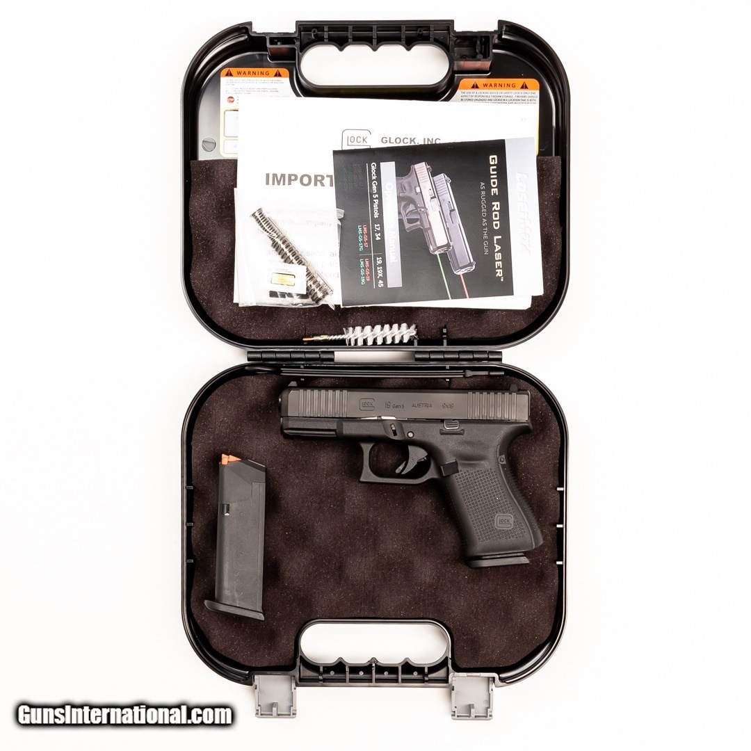 Description: Guns Listing ID: 862023 The GLOCK Gen 5 lineup is the latest example of GLOCK‚‚S constant pursuit of perfection. Gen 5 pistols feature over 20 design modifications from their Gen 4 predecessors, including the GLOCK Marksman Barrel, nDLC finish, ambidextrous slide stop lever, the removal of finger grooves and a flared mag-well. These changes deliver improved accuracy, durability, performance, control, and flexibility, whether on the range or in a situation where fractions of a second matter. This model has a Lasermax guide rod and includes the original case, manual, two 15-round magazines, and the original parts. Get the best bang for your buck when you get a Certified Used Firearm . When you see the Certified Used stamp on any of our firearms, you can be confident that you’re getting exactly what you want – a gun only in very good to excellent condition and held to the highest quality standard. All Certified Used Guns come with a ‘no questions asked’ return policy . PLUS, ALL CERTIFIED USED GUNS SHIP FREE SOLD Manufacturer: GLOCK Model: G19 GEN 5 Caliber Info: 9MM LUGER (9X19 PARA) Condition: Used - Certified Barrels: 4 BARREL Finish: BLACK |