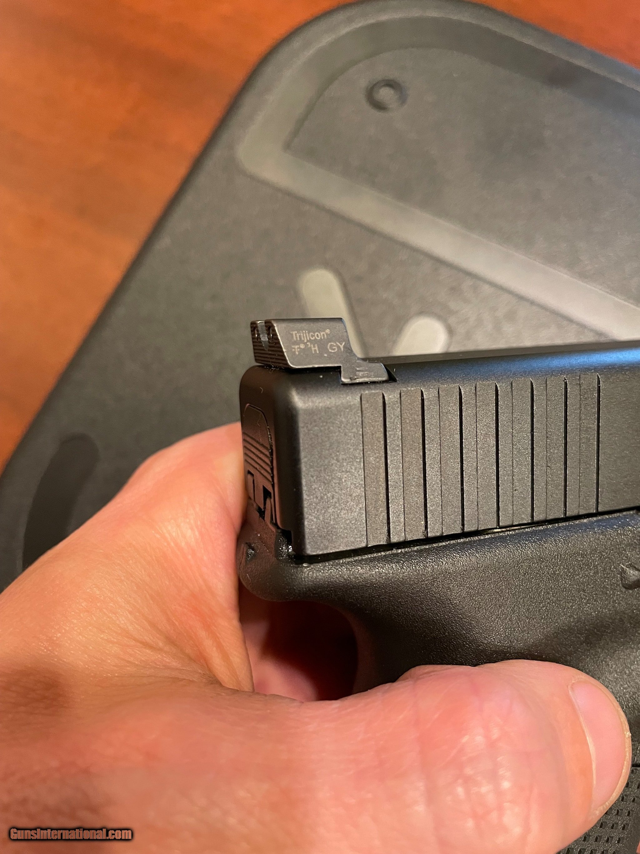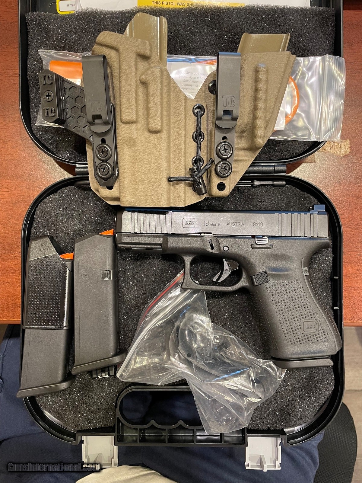 Description: Guns Listing ID: 891644 Listing is for an excellent condition Glock G19 Gen 5. It has Trijicon day/night sights installed. Comes with box, factory sights, 2 extra mags, Tier 1 Concealed Appendix holster. SOLD Manufacturer: GLOCK Model: G19 GEN 5 Caliber Info: 9MM LUGER (9X19 PARA) Condition: Used - Non-Certified Barrels: 4 BARREL |