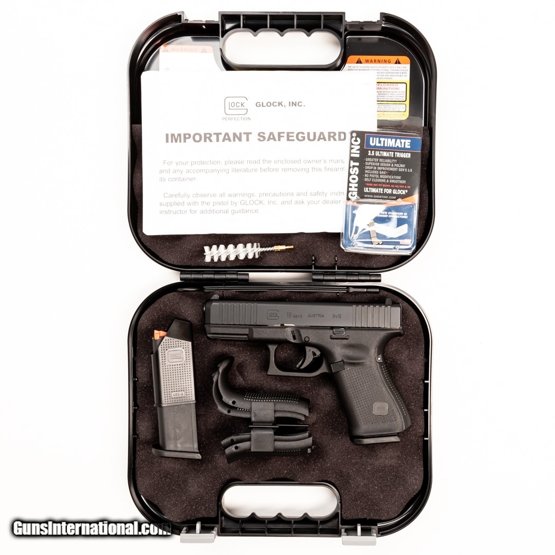 Description: Guns Listing ID: 872719 The GLOCK Gen 5 lineup is the latest example of GLOCK‚‚S constant pursuit of perfection. Gen 5 pistols feature over 20 design modifications from their Gen 4 predecessors, including the GLOCK Marksman Barrel, nDLC finish, ambidextrous slide stop lever, the removal of finger grooves and a flared mag-well. These changes deliver improved accuracy, durability, performance, control, and flexibility, whether on the range or in a situation where fractions of a second matter. Purchase includes the original case, manual, two 15-round magazines, a loader, and extra backstraps. Get the best bang for your buck when you get a Certified Used Firearm . When you see the Certified Used stamp on any of our firearms, you can be confident that you’re getting exactly what you want – a gun only in very good to excellent condition and held to the highest quality standard. All Certified Used Guns come with a ‘no questions asked’ return policy . PLUS, ALL CERTIFIED USED GUNS SHIP FREE SOLD Manufacturer: GLOCK Model: G19 GEN 5 Caliber Info: 9MM LUGER (9X19 PARA) Condition: Used - Certified Barrels: 3.9 BARREL Finish: BLACK |