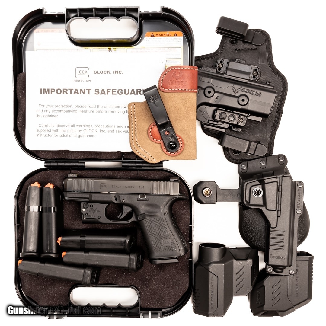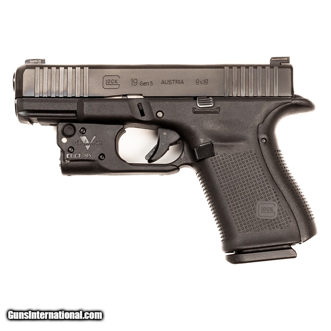 Description: Guns Listing ID: 893275 The GLOCK Gen 5 lineup is the latest example of GLOCK‚‚S constant pursuit of perfection. Gen 5 pistols feature over 20 design modifications from their Gen 4 predecessors, including the GLOCK Marksman Barrel, nDLC finish, ambidextrous slide stop lever, the removal of finger grooves and a flared mag-well. These changes deliver improved accuracy, durability, performance, control, and flexibility, whether on the range or in a situation where fractions of a second matter. Get the best bang for your buck when you get a Certified Used Firearm . When you see the Certified Used stamp on any of our firearms, you can be confident that you’re getting exactly what you want – a gun only in very good to excellent condition and held to the highest quality standard. All Certified Used Guns come with a ‘no questions asked’ return policy . PLUS, ALL CERTIFIED USED GUNS SHIP FREE SOLD Manufacturer: GLOCK Model: G19 GEN 5 Caliber Info: 9MM LUGER (9X19 PARA) Condition: Used - Certified Barrels: not specified Finish: BLACK |