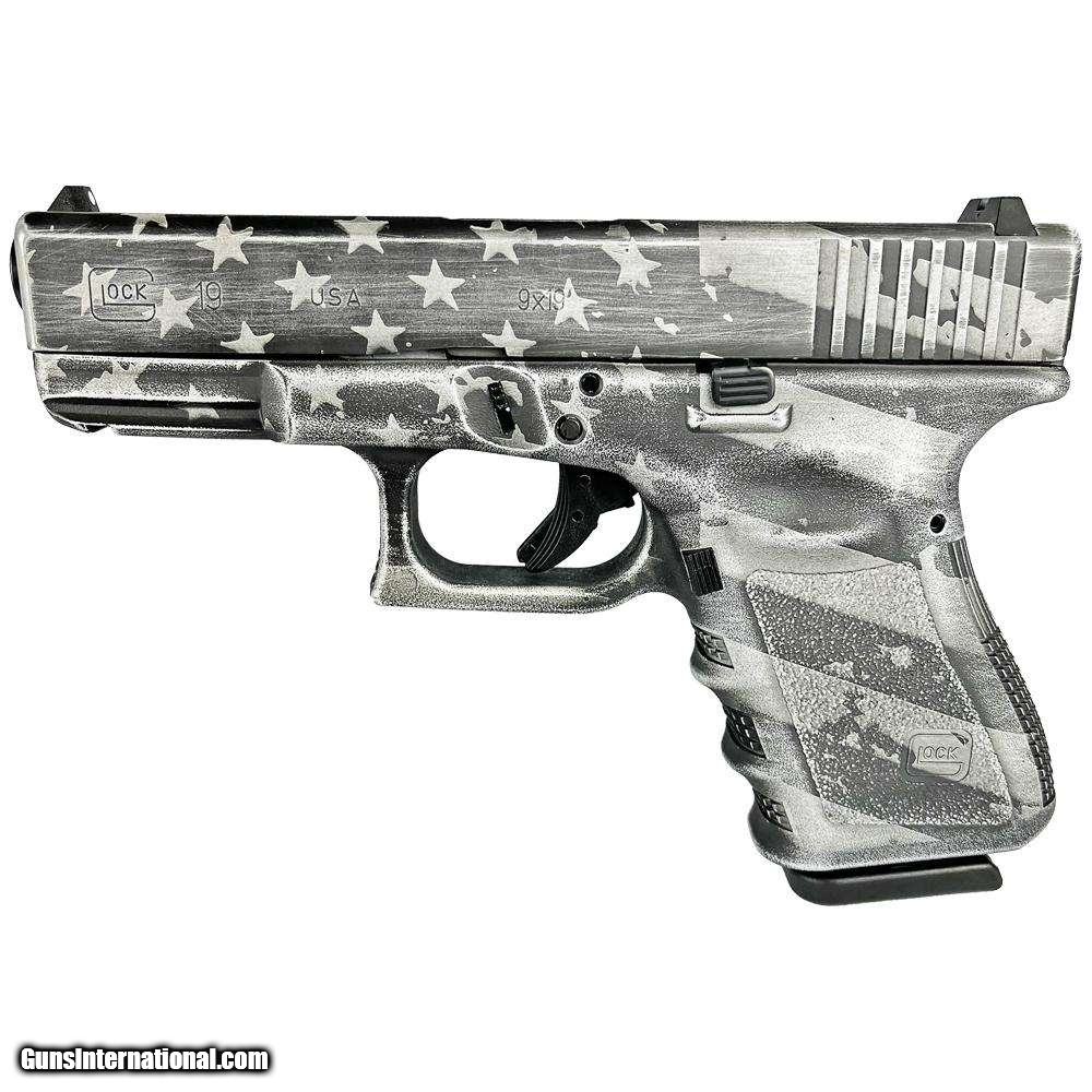 Description: Guns Listing ID: 282102 One of the most famous pistols in the world, the Glock 19 has been the premier choice of law enforcement and special operations groups for over 30 years. With its compact-sized frame, the Glock 19 can serve as both a duty or home defense and concealed carry pistol without any sacrifice to firepower or performance. The Gen3 model brings new updates over the previous generation by adding finger grooves along with a new grip texture to improve comfort while shooting. The Gen3 models also introduce the new Universal Glock Rail for mounting lights and lasers. This special edition model is manufactured in Austria and features a distressed gray Cerakote finish with a USA flag pattern. Two 15-round magazines are included. SOLD Manufacturer: GLOCK Model: G19 GEN3 (DFG) Caliber Info: 9MM LUGER (9X19 PARA) Condition: new Barrels: 4.02 BARREL Action: STRIKER Finish: CERAKOTE Weight: 1.4 LBS. |