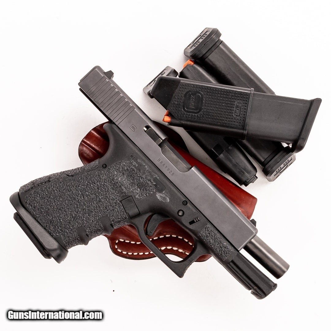 Description: Guns Listing ID: 373193 This Glock 19 is a versatile pistol chambered in 9mm. It is built with a short-recoil operation and integrated rail for easy mounting of accessories. It is well-suited for service use or personal protection. This Glock G19 Gen 3 is in excellent condition! It comes with the original case, manual, five 10-round magazines, loader, and a right-handed DeSantis leather holster. SOLD Manufacturer: GLOCK Model: G19 GEN3 Caliber Info: 9MM LUGER Condition: Used - Certified Barrels: 4 BARREL Finish: BLACK |