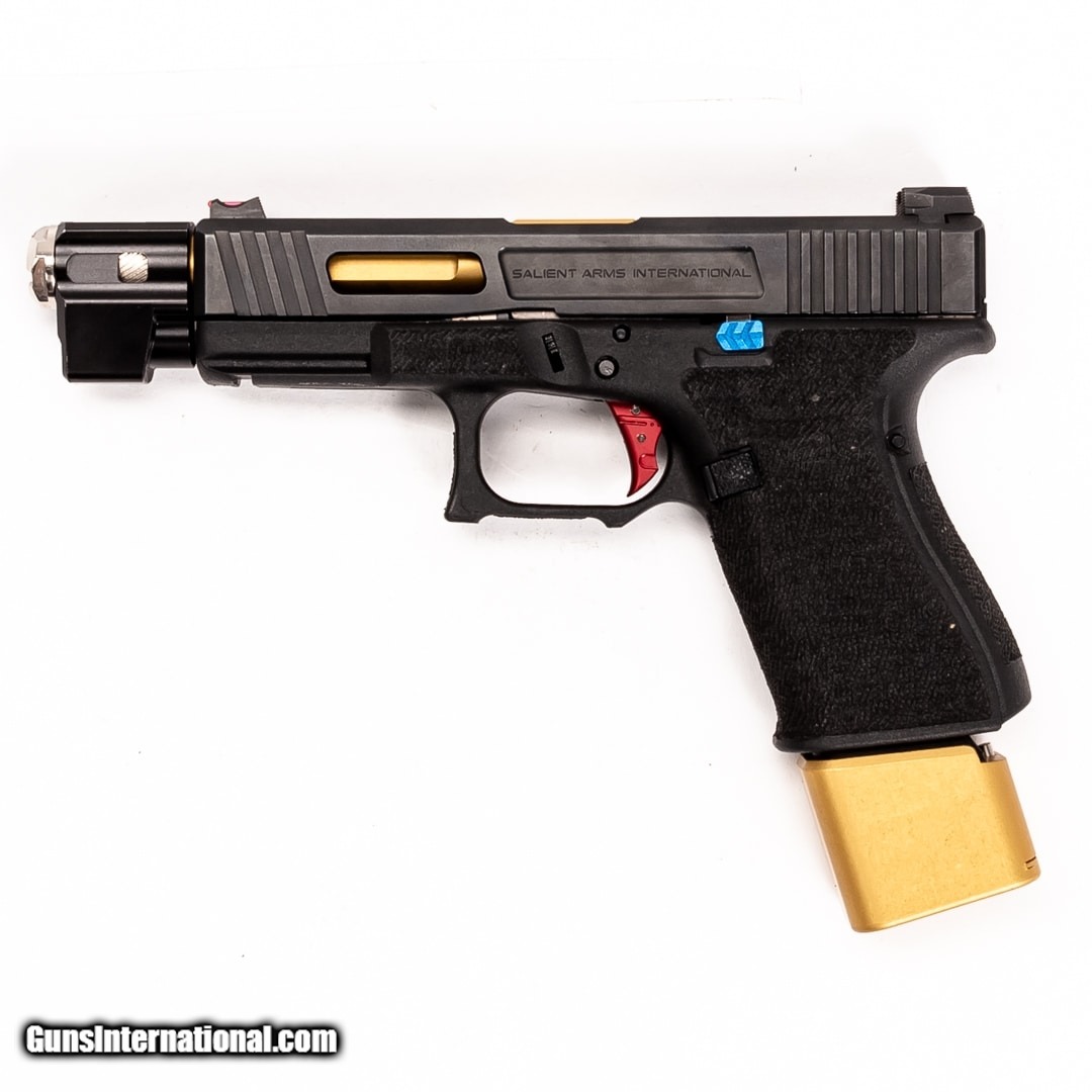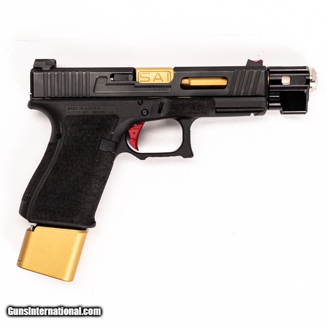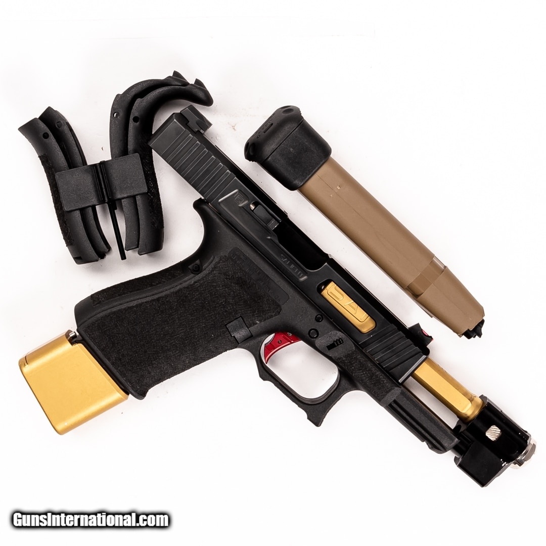 Description: Guns Listing ID: 327960 Glock 19s are one of the most popular carry guns in the U.S. and abroad. The G19 has served civilians, military, and law enforcement faithfully for decades. This model is heavily modified by a company that prides itself in quality and maximizing performance. This handgun can even be found in the film 13 Hours as the sidearms of one of the main CIA contractors. This pistol features serration cuts, lightning cuts, a match grade barrel, custom stippling, a light and polished trigger action (via an aftermarket SSVI TYR Trigger), fiber optic sights, an extended slide release, and a Tyrant Designs T-Comp compensator. This pistol also includes the original case and manual, backstraps with matching stippling to the frame, one 17-round magazine, and one 19-round magazine. SOLD Manufacturer: GLOCK Model: G19 GEN4/Salient Arms International Caliber Info: 9MM LUGER Condition: Used - Certified Barrels: 5.25 BARREL Finish: BLACK |