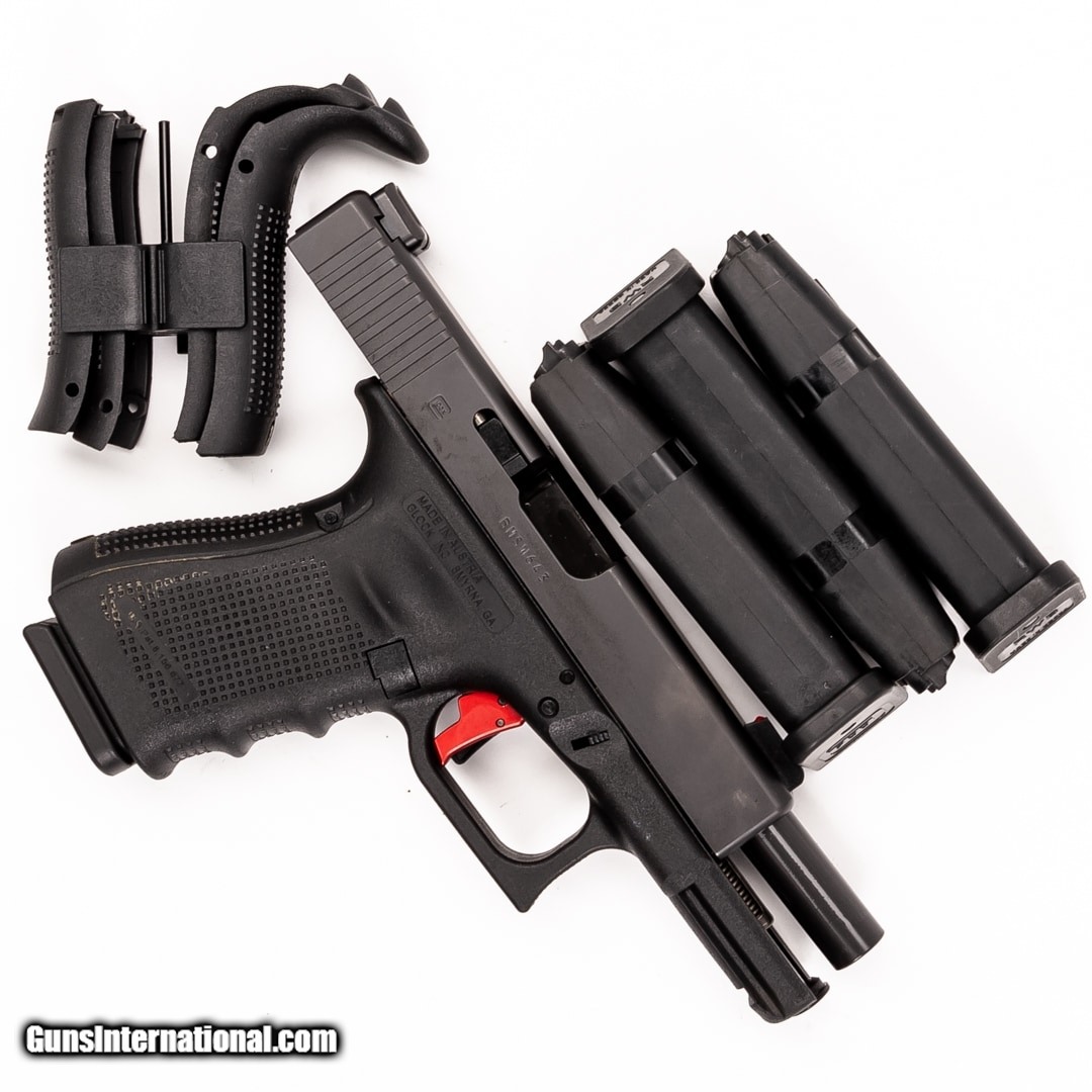 Description: Guns Listing ID: 343580 The Glock 19 Gen 4 is one of the most widely used handguns in the world and is a favorite among militaries, law enforcement agencies, and private citizens. It makes an excellent compact duty & concealed carry sidearm, plus it employs Glock's signature safe action trigger. 2-15 round factory magazines and 2-15 round aftermarket magazines are included. It has been upgraded with an Apex trigger and aftermarket recoil spring. Original parts included. SOLD Manufacturer: GLOCK Model: G19 GEN4 Caliber Info: 9MM LUGER Condition: Used - Certified Barrels: 4 BARREL Finish: BLACK |