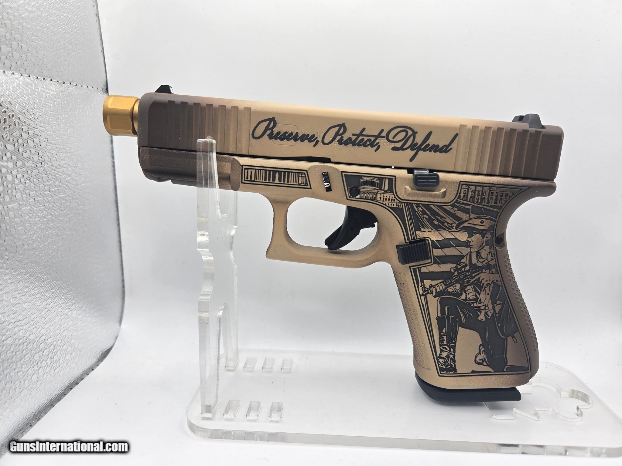 Description: Guns Listing ID: 575219 We have a used but never fired Glock 19 custom edition 9mm pistol. The pistol has been a safe queen and never fired by the original owner. The gun comes with original box, three 15 round magazines, and all the other OEM items. This is a beautiful pistol for any collector of rarities and custom guns. This is a special edition version with engraving, custom cerakote, and upgraded barrel. Great deal for this beautiful handgun! SOLD Manufacturer: GLOCK Model: G19 GEN5 CONSTITUTION Caliber Info: 9MM LUGER (9X19 PARA) Condition: Used - Non-Certified Barrels: 4.6" BARREL Action: STRIKER FIRED Finish: CERAKOTE Weight: 1.4 lbs. |