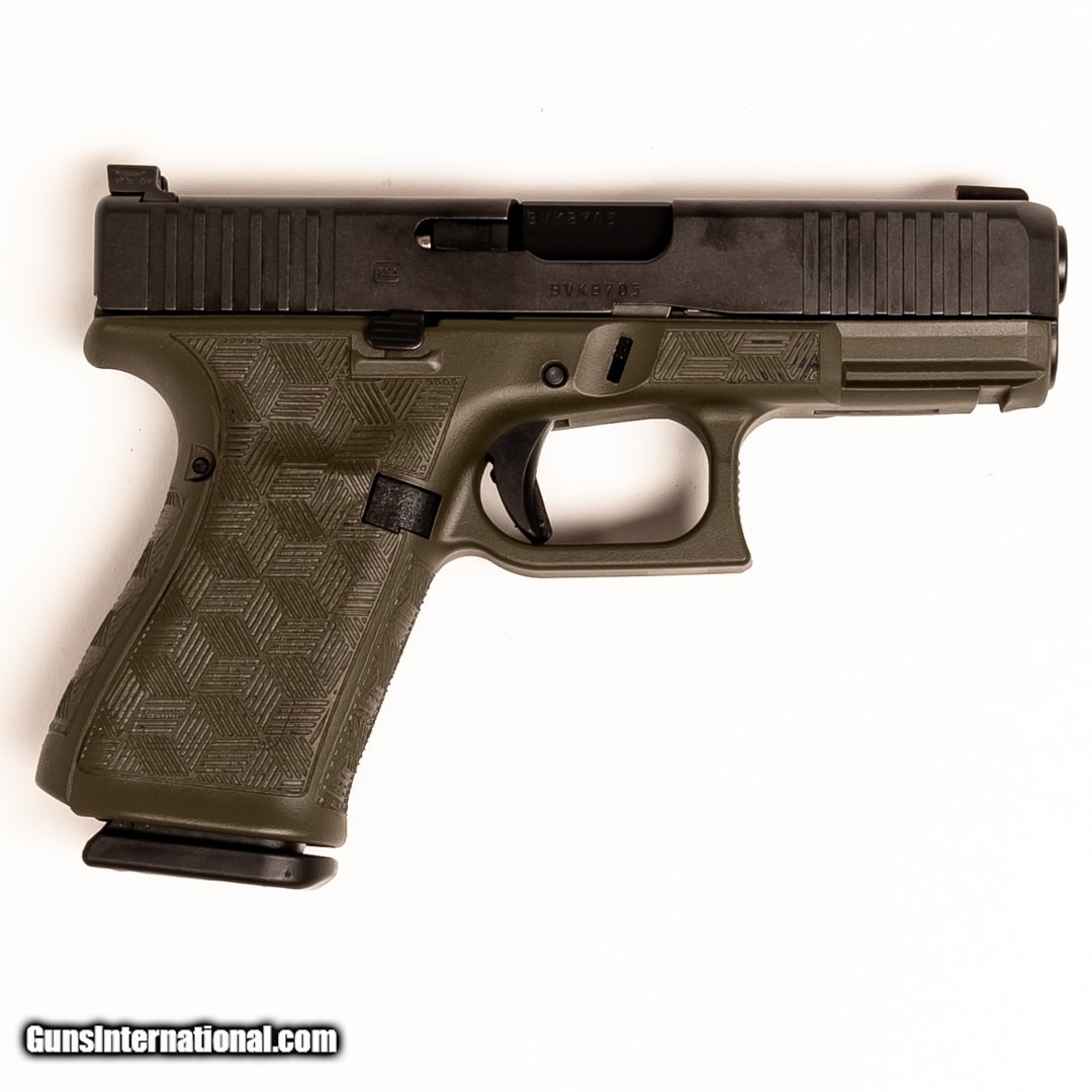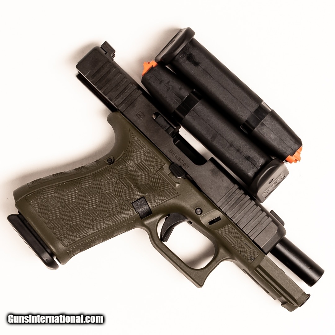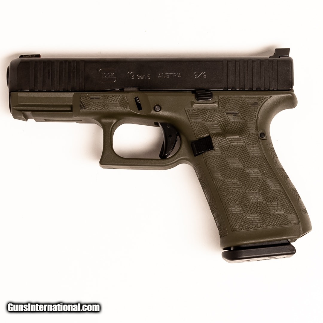 Description: Guns Listing ID: 581229 The Glock 19 Gen 5 is the newest model in the legendary Glock 19 lineup. G19‚‚s are incredibly popular and have seen extensive use by law enforcement, government agencies, the military, as well as countless civilians. This handgun features three 15-round magazines, a custom stippled frame, Hi-Viz sights, and the orignal case with the manual. SOLD Manufacturer: GLOCK Model: G19 GEN5 Caliber Info: 9MM LUGER (9X19 PARA) Condition: Used - Certified Barrels: 3.8 BARREL Finish: OD GREEN/BLACK |
