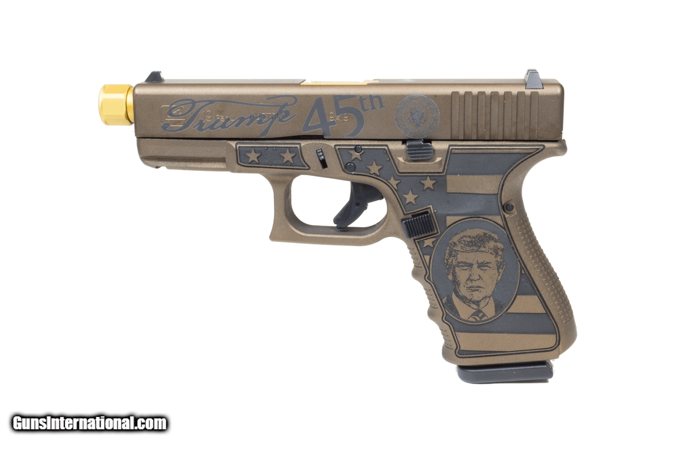 Description: SOLD Manufacturer: GLOCK Model: G19 "TRUMP Caliber Info: 9MM LUGER (9X19 PARA) Condition: new Barrels: 4.5 BARREL Finish: BRONZE |