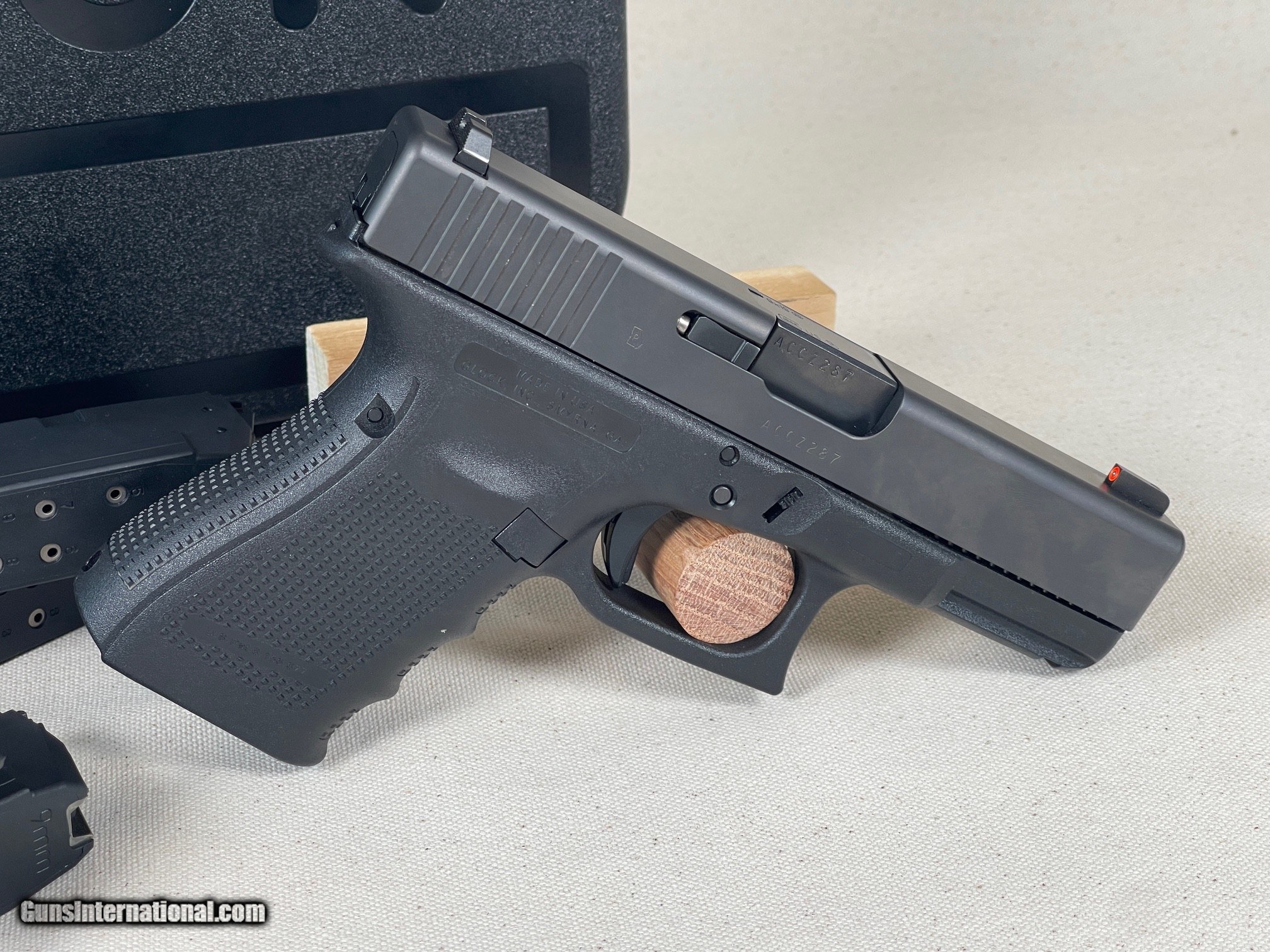 Description: This firearm comes with three 15 round magazines and two 31 round magazines. Very clean gun that has the back straps and original paperwork. GLOCK 19 Gen4 The GLOCK 19 Gen4 pistol in 9 mm Luger offers great firepower while allowing to shoot quick and accurately. It is ideal for a more versatile role due to its reduced dimensions, without sacrificing all-important magazine capacity. The modular back strap system makes it possible to instantly customize its grip to accommodate any hand size. The reversible magazine catch makes it ideal for left and right-handed shooters. Caliber 9x19mm Barrel Length 102 mm | 4.02 inch Weight with loaded magazine 855 g | 30.16 oz System Safe Action® Weight without magazine 600 g | 21.16 oz Trigger Pull 28 N Mag. Capacity Standard: 15 Optional: 17 / 19 / 24 / 31 / 33 / 10 SOLD Handgun Caliber: 9x19mm Parabellum (9mm Luger, 9x19mm NATO) Manufacturer: Glock Model: G19 |