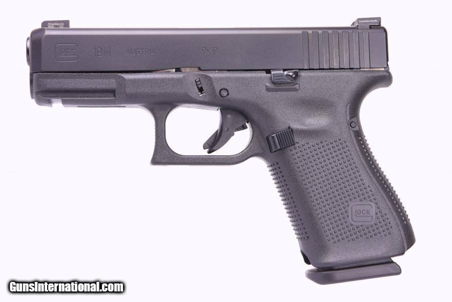Description: Guns Listing ID: 500314 The Glock 19M - 9mm was developed for use by the FBI, and served as the predecessor to the Gen5 line. The 19M includes all of the standard Gen5 features, such as the straight front grip area, flared magwell, nDLC finish, as well as the Glock Marksman Barrel. Additionally, to meet the FBI‚‚s service standards, the 19M also includes Ameriglo Agent Night Sights, the Extended Ambidextrous Slide Stop Lever, and the unique rounded \"FBI\" magazine catch. SOLD Manufacturer: GLOCK Model: G19M Compact Caliber Info: 9 MM LUGER Condition: new Barrels: 4.02" barrel Finish: BLACK |