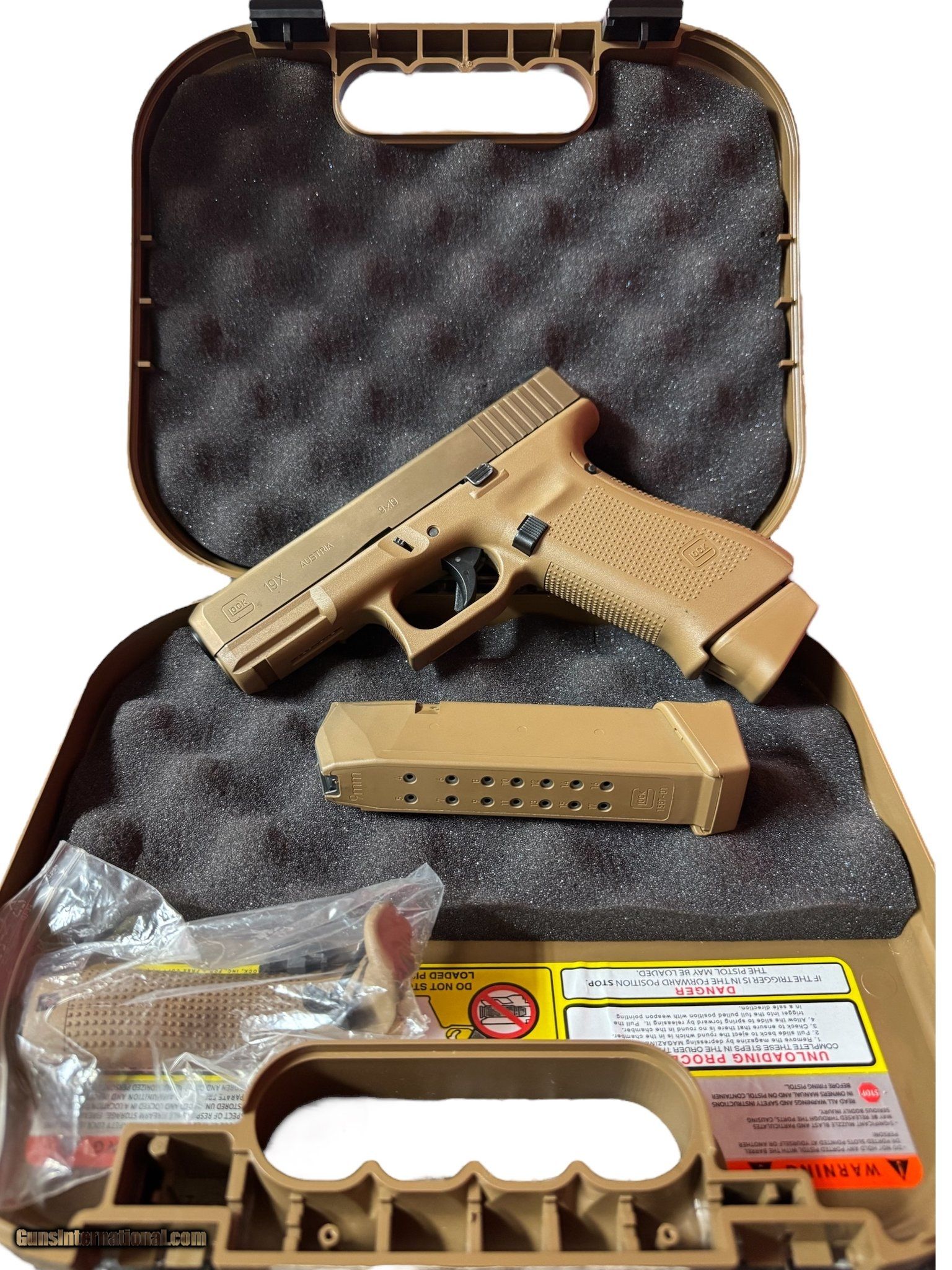 Description: Guns Listing ID: 508391 The 19x is the semi-auto pistol GLOCK® designed for the U.S. military‚‚s Modular Handgun System (MHS), and is now available for civilian purchase. The 19x has many of the features of the new Gen 5 series pistols on a full-size, model 17 frame, with a compact model 19 slide and barrel assembly. The full grip makes it easy to grab the gun from a carry position and enhances shooter control. The shorter slide makes the gun faster to draw with less slide to clear a holster, and the shorter sight radius makes the gun faster to start and stop on target. The slide and main metal parts of the 19x semi-automatic pistol come with an ion-bonded, nDLC coating in Coyote brown, for increased protection against corrosion and scratching, and improved ability to function in dry conditions with minimal lubrication. The muzzle end of the slide has been beveled for smooth draw and snagless reholstering. The finger grooves have been eliminated on the 19x frame to enhance speed of getting the shooter‚‚s fingers into a correct hold. An ambidextrous slide stop lever accommodates both right- and left-handed shooters. A Marksman barrel with polygonal rifling provides exceptional accuracy. Rough textured frame surface (RTF) on the Coyote polymer frame provides a sure hold on the pistol when hands are wet or sweaty, and the enlarged magazine catch is reversible. An integral accessory rail in front of the trigger guard allows for the attachment of a plethora of aftermarket tactical accessories. The GLOCK 19x Semi-Auto Pistol features the simplicity and reliability that have made GLOCK pistols a favored sidearm for law enforcement, military, and civilian use all over the world. Designed for the U.S. military‚‚s MHS Model 17 Gen 5 polymer frame Model 19 slide and barrel assembly Ion-bonded, nDLC slide coating No finger grooves Marksman barrel Beveled slide Ambi slide stop Rough textured frame Integral accessory rail Finished in desert tan, includes 2-17 round magazines and original case with purchase, in very good condition, aftermarket back plate on firea SOLD Manufacturer: GLOCK Model: G19X Caliber Info: 9MM LUGER (9x19 PARA) Condition: Used - Non-Certified Barrels: 4 Action: SEMI AUTOMATIC Finish: desert tan |