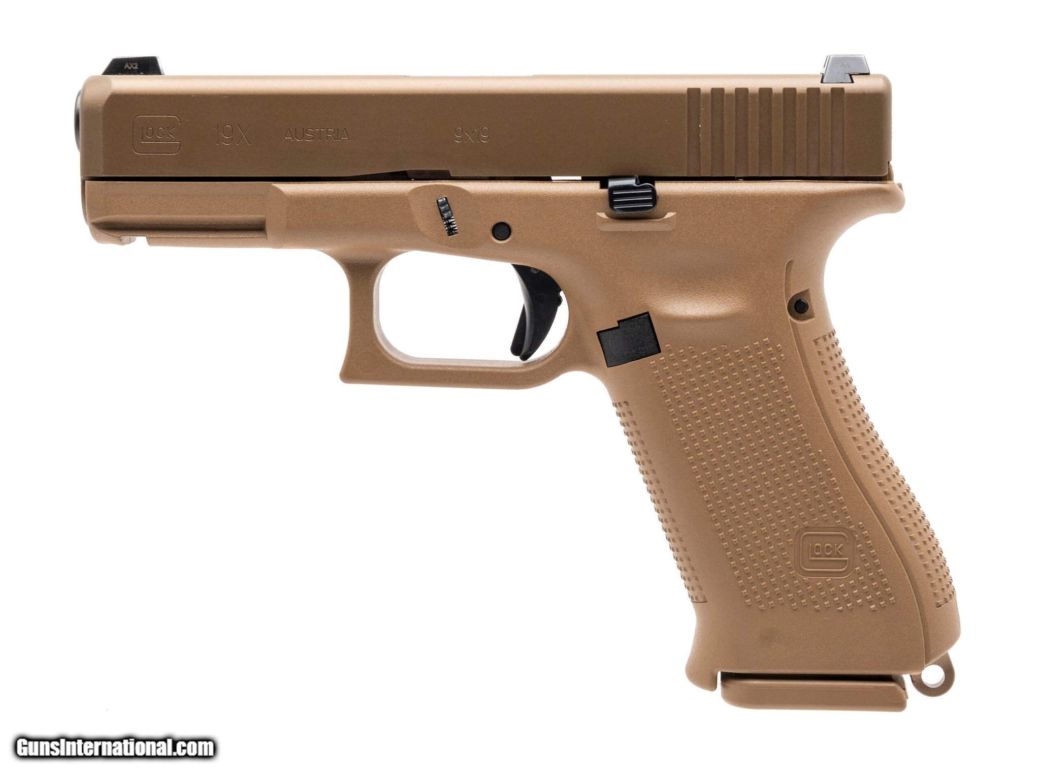 Description: Guns Listing ID: 545624 SN: CDKU702. Modern production, 9mm with a 4\" marksman barrel. Bore is excellent. Striker fired semi-auto pistol with night sights, ambidextrous slide release, accessory rail, coyote nPVD finish, and coyote brown polymer frame. Includes 2 additional 17rd magazines, 2 additional backstraps, speed loader, and original carry case. Overall condition is near excellent. (PR74194) SOLD Manufacturer: GLOCK Model: G19X Caliber Info: 9MM LUGER (9x19 PARA) Condition: Used - Non-Certified Barrels: 4 BARREL Action: SEMI AUTOMATIC Finish: coyote brown |
