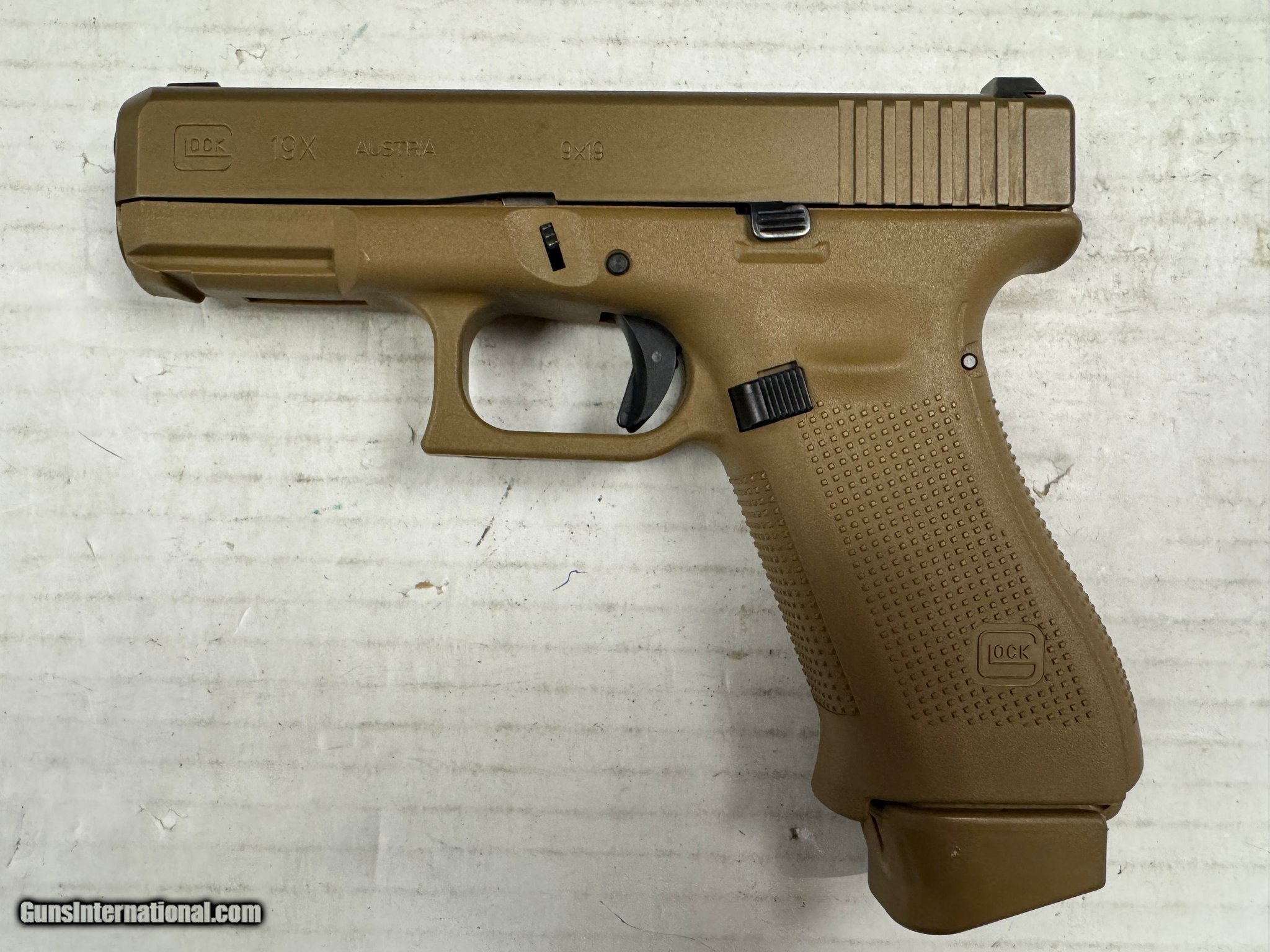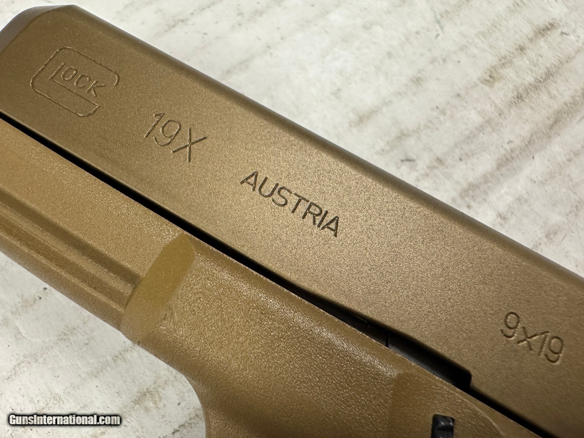 Description: Guns Listing ID: 573023 Glock, 19X, Striker Fired, Semi-automatic, Polymer Frame Pistol, Compact, 9MM, 4.02\" Marksman Barrel, PVD Finish, Coyote, Glock Night Sights -Firearm is in excellent condition -Night Sights installed -1x Mag -NO CASE SOLD Manufacturer: GLOCK Model: G19X Caliber Info: 9MM LUGER (9x19 PARA) Condition: Used - Non-Certified Barrels: 4.02" BARREL Action: SEMI AUTOMATIC Finish: coyote |