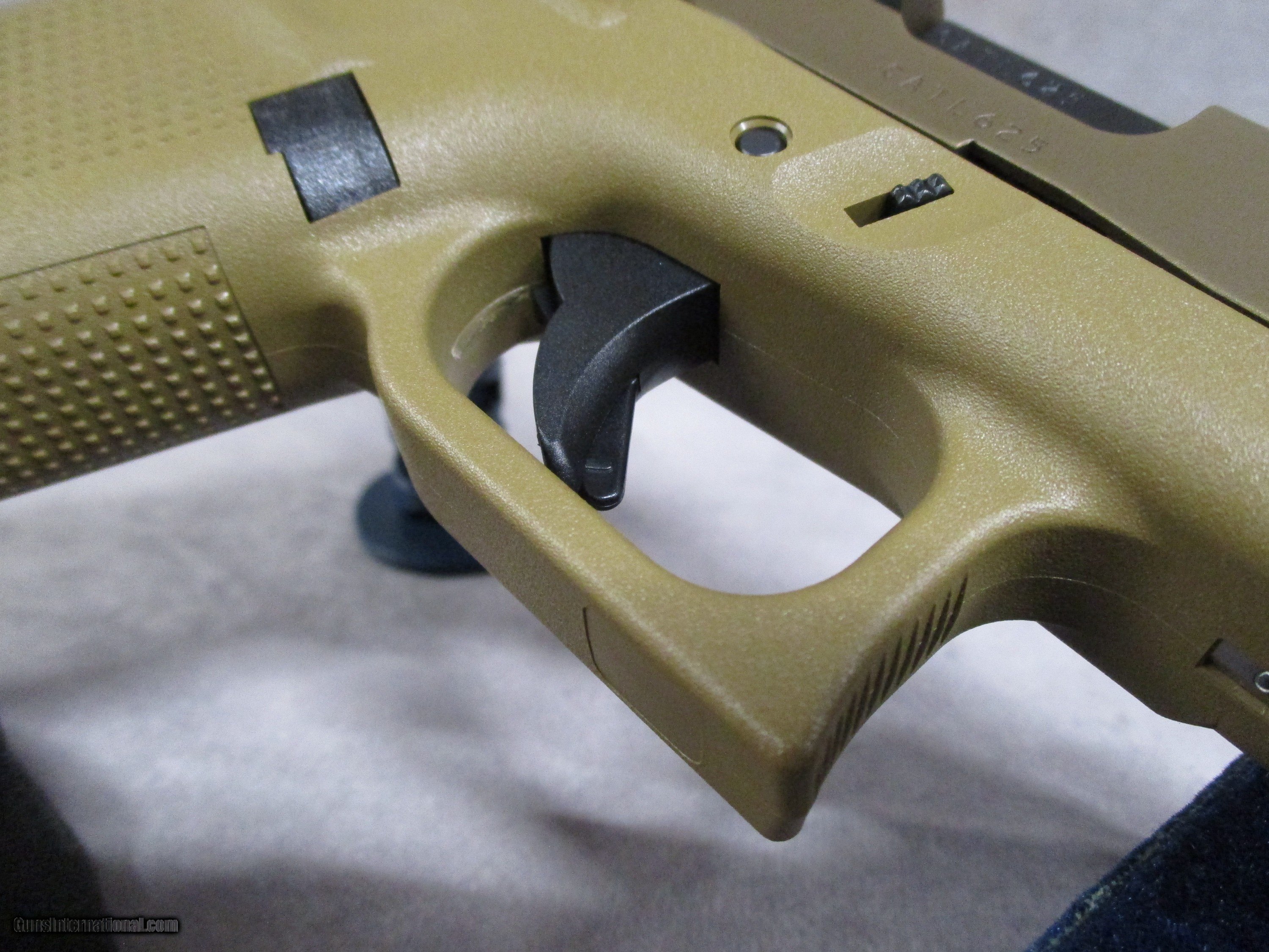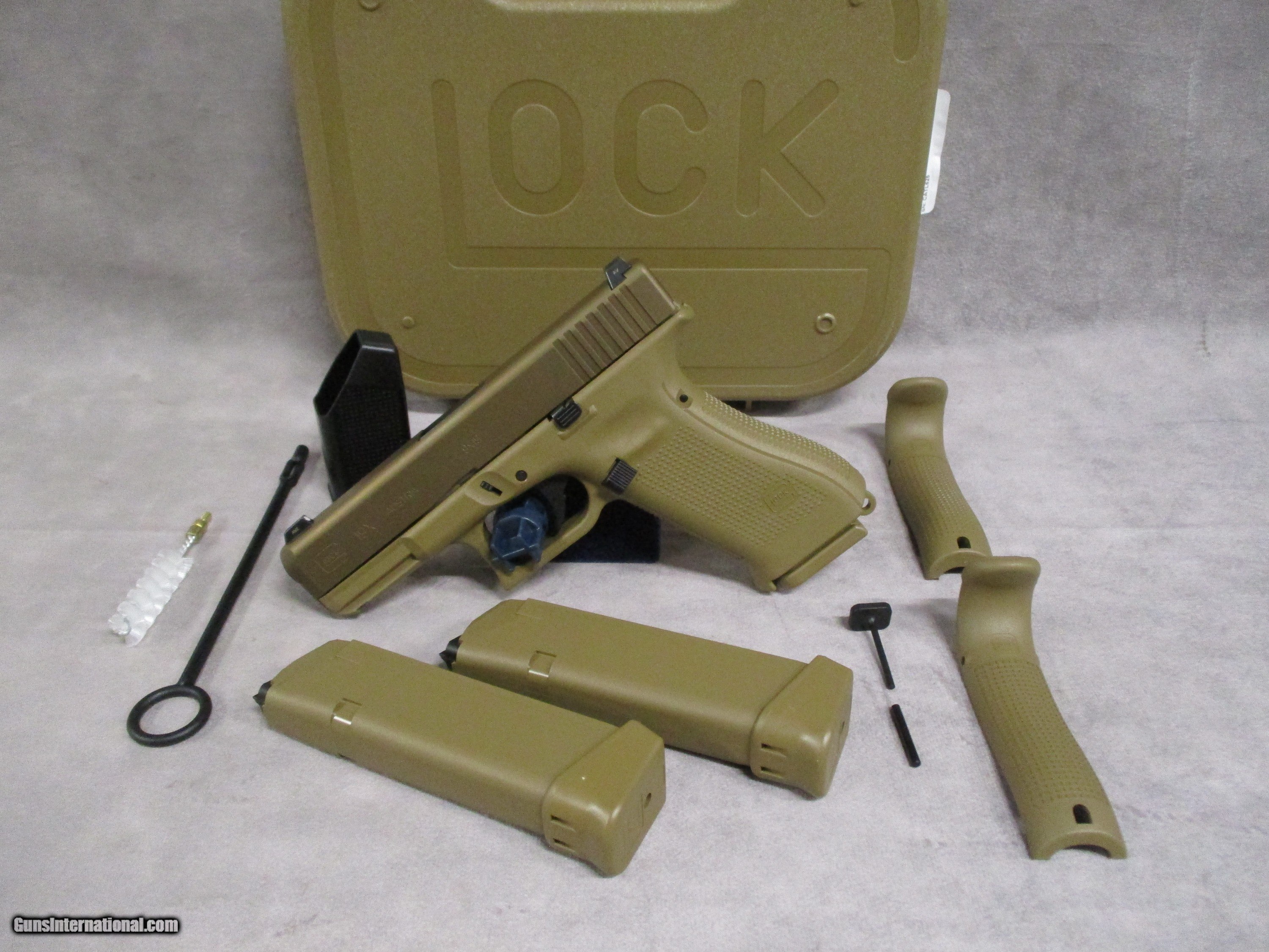 Description: The Glock G19X in 9mm has become one of the most popular Glock models in recent years thanks to its involvement in the U.S. Army’s pistol trials, and because it represents the best combination between the G17 and standard G19. It is the G19 slide paired with a slightly modified G17 frame. The G19X was built to be the ideal pistol for all situations and conditions. Although not labeled as such, the G19X is a Gen 5 pistol in all but name. With the Gen 5, additional features have been added over previous gens. These include the Glock Marksman Barrel (GMB) with improved polygonal rifling and target barrel crown, ambidextrous slide stop levers, no finger grooves on the grip frame, and the new nPVD finish which, like the nDLC finish used on other Gen 5 pistols, is more durable than the finish used on previous generations of Glock pistols. The nPVD is unique to the G19X; its coyote color makes the G19X the first-ever factory colored slide. The G19X shown here is brand new in the box and ready to go. Included with the gun and box are the manual, one 17-round magazine, two 19-round magazines, a Glock magazine loading tool, alternate back straps, and cleaning brush and rod. If you are looking for a new duty pistol or a home defense gun, the G19X is an excellent choice. SOLD Handgun Caliber: 9x19mm Parabellum (9mm Luger, 9x19mm NATO) Manufacturer: Glock, G.m.b.H. Model: G19X Serial Number: CATL625 Bore: Hybrid traditional/polygonal rifling, 6 grooves, 1:9.8 inches (1 in 250 mm) RH twist Ejectors: Auto-ejection Condition: New in Box Barrels: Carbon Steel Barrel Type: Glock Marksman Barrel Action: Semi-automatic, Browning type short recoil system, striker fired double action. Triggers: Glock smooth combat trigger, 5.5 lbs. pull weight (according to box label) Stock: Polymer grip frame Fore End: Polymer, picatinny rail equipped LOP: 2.75 inches (70 mm) Finish: nPVD finish, Coyote tan Weight: 22.05 oz. w/o mag, 24.83 oz. w/empty mag, 31.39 oz. loaded Sights: Glock Night Sights, sight radius 5.94 inches (151 mm) Case: Glock factory box |