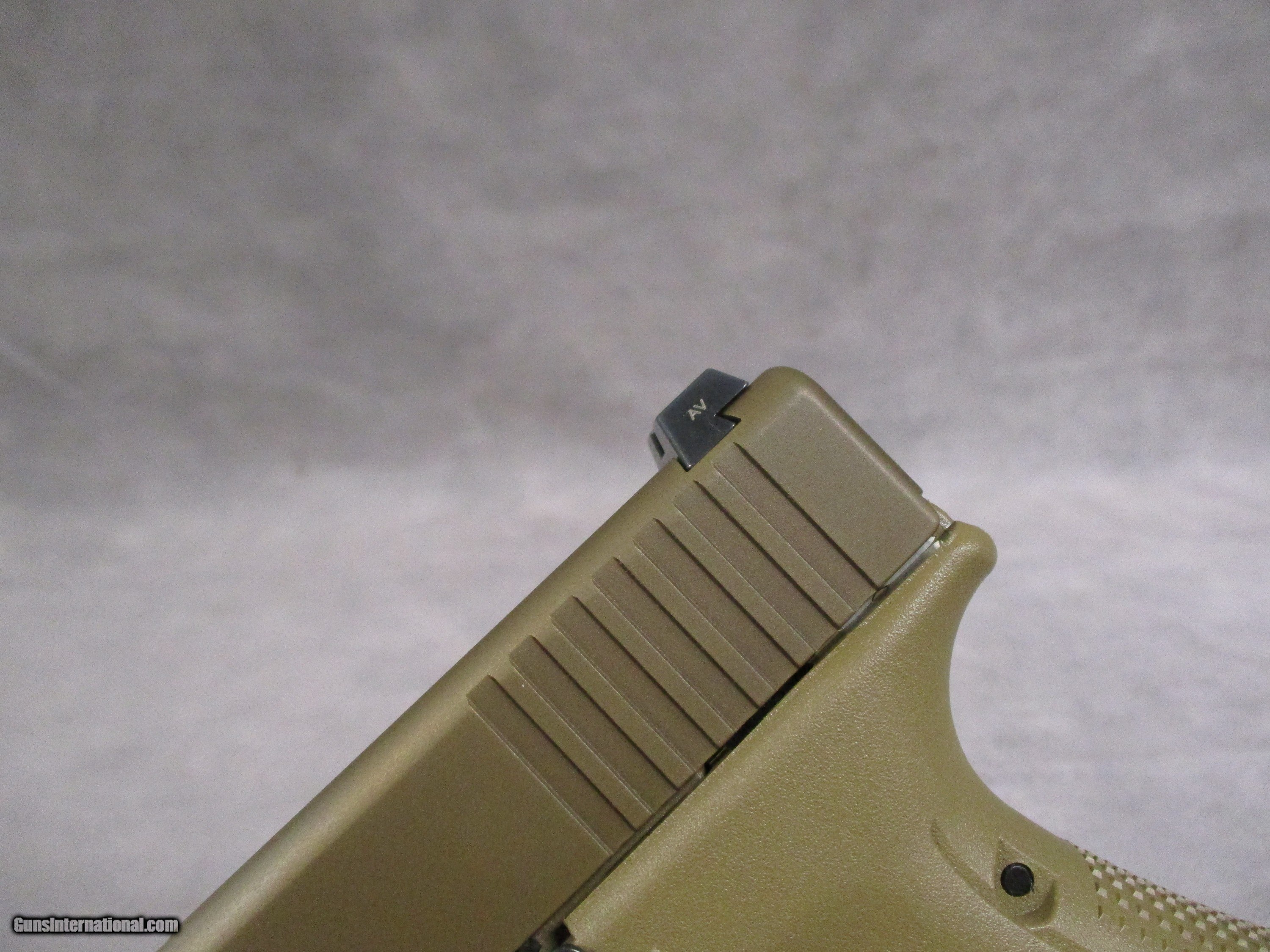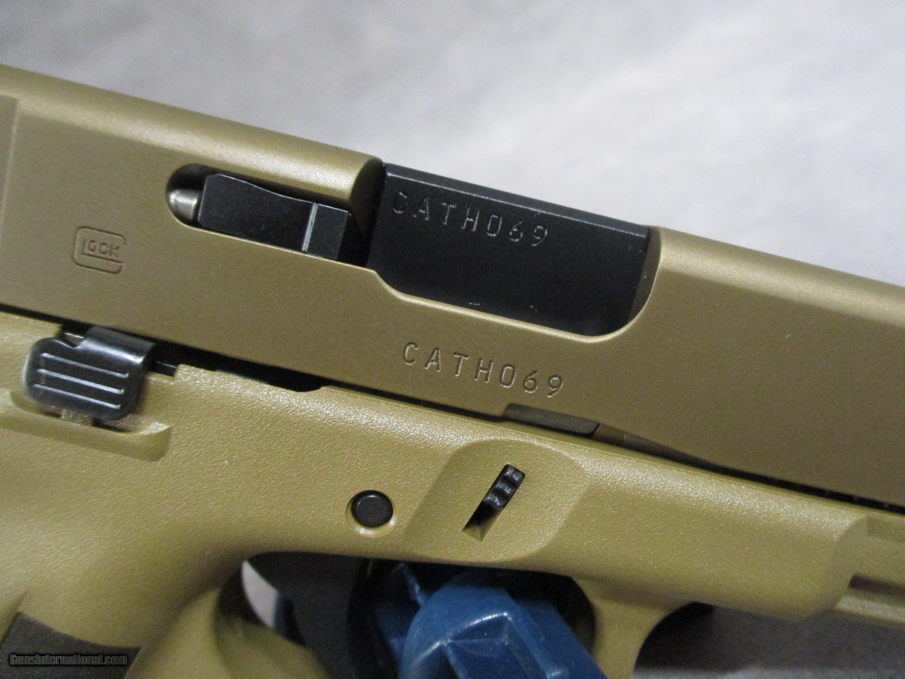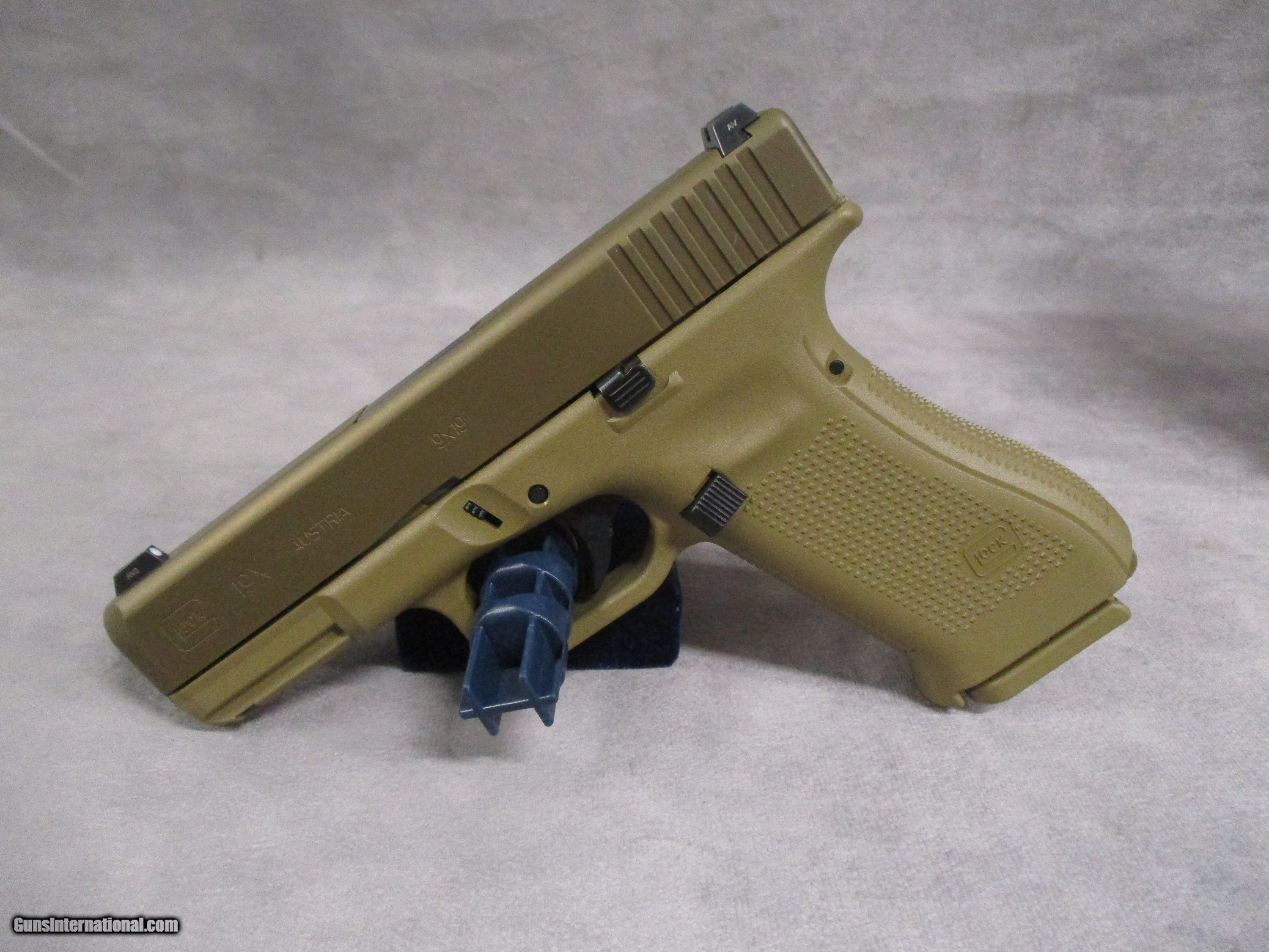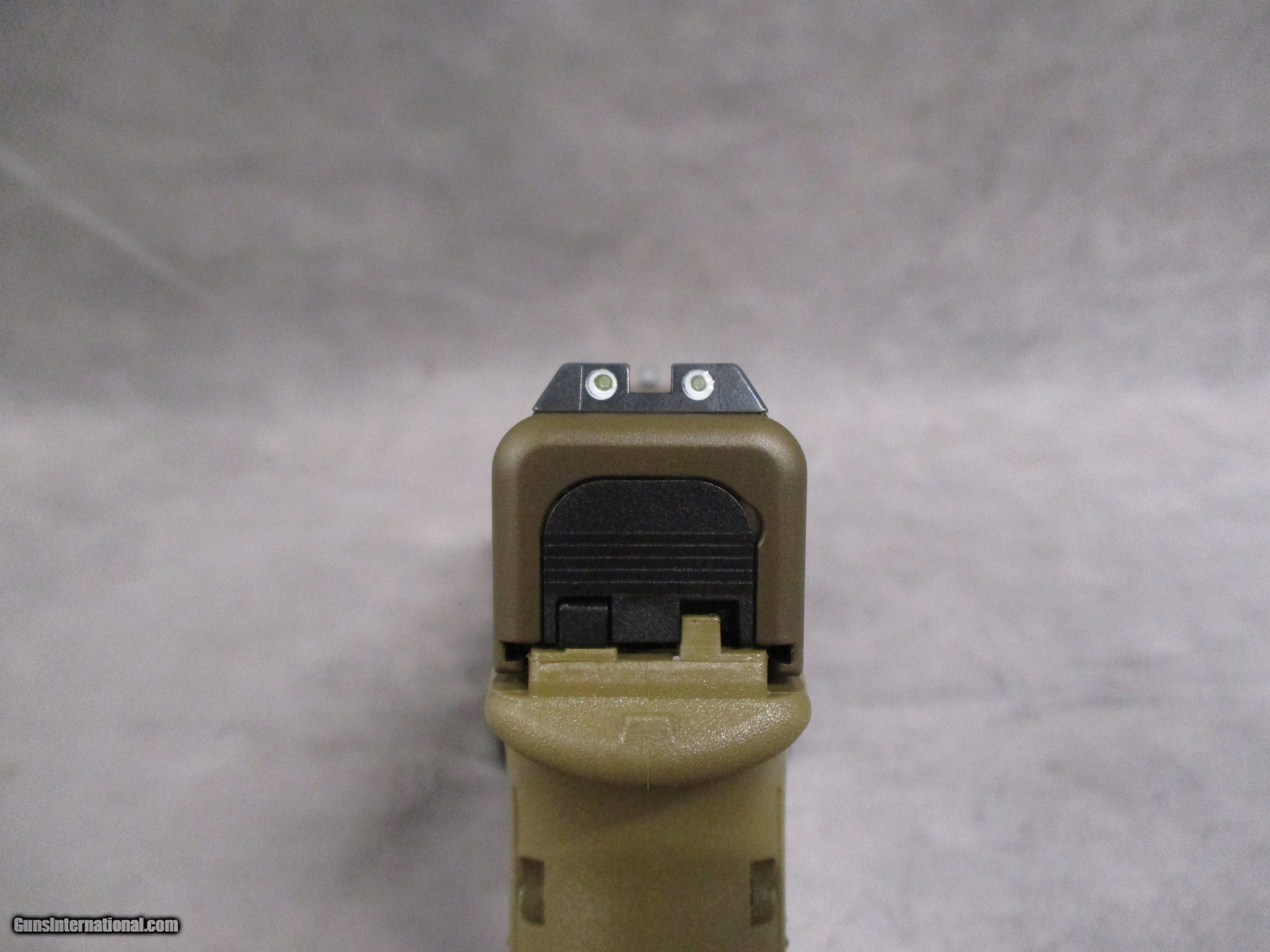 Description: The Glock G19X in 9mm has become one of the most popular Glock models in recent years thanks to its involvement in the U.S. Army’s pistol trials, and because it represents the best combination between the G17 and standard G19. It is the G19 slide paired with a slightly modified G17 frame. The G19X was built to be the ideal pistol for all situations and conditions. Although not labeled as such, the G19X is a Gen 5 pistol in all but name. With the Gen 5, additional features have been added over previous gens. These include the Glock Marksman Barrel (GMB) with improved polygonal rifling and target barrel crown, ambidextrous slide stop levers, no finger grooves on the grip frame, and the new nPVD finish which, like the nDLC finish used on other Gen 5 pistols, is more durable than the finish used on previous generations of Glock pistols. The nPVD is unique to the G19X; its coyote color makes the G19X the first-ever factory colored slide. The G19X shown here is brand new in the box and ready to go. Included with the gun and box are the manual, one 17-round magazine, two 19-round magazines, a Glock magazine loading tool, alternate back straps, and cleaning brush and rod. The box has surface marks on one side. Some gun oil and a cloth will clean this up with a little effort. If you are looking for a new duty pistol or a home defense gun, the G19X is an excellent choice. SOLD Handgun Caliber: 9x19mm Parabellum (9mm Luger, 9x19mm NATO) Manufacturer: Glock, G.m.b.H. Model: G19X Serial Number: CATH069 Bore: Hybrid traditional/polygonal rifling, 6 grooves, 1:9.8 inches (1 in 250 mm) RH twist Ejectors: Auto-ejection Condition: New in Box Barrels: Carbon Steel Barrel Type: Tilting Action: Browning short recoil system, striker-fired double action. Triggers: Glock serrated combat trigger, 5.5 lbs. pull weight (according to box label) Stock: Polymer grip frame Fore End: Polymer, picatinny rail equipped Finish: nPVD finish, Coyote tan Weight: 22.05 oz. w/o mag, 24.83 oz. w/empty mag, 31.39 oz. loaded Sights: Glock Night Sights, sight radius 5.94 inches (151 mm) Extras: See description Case: Glock factory box |