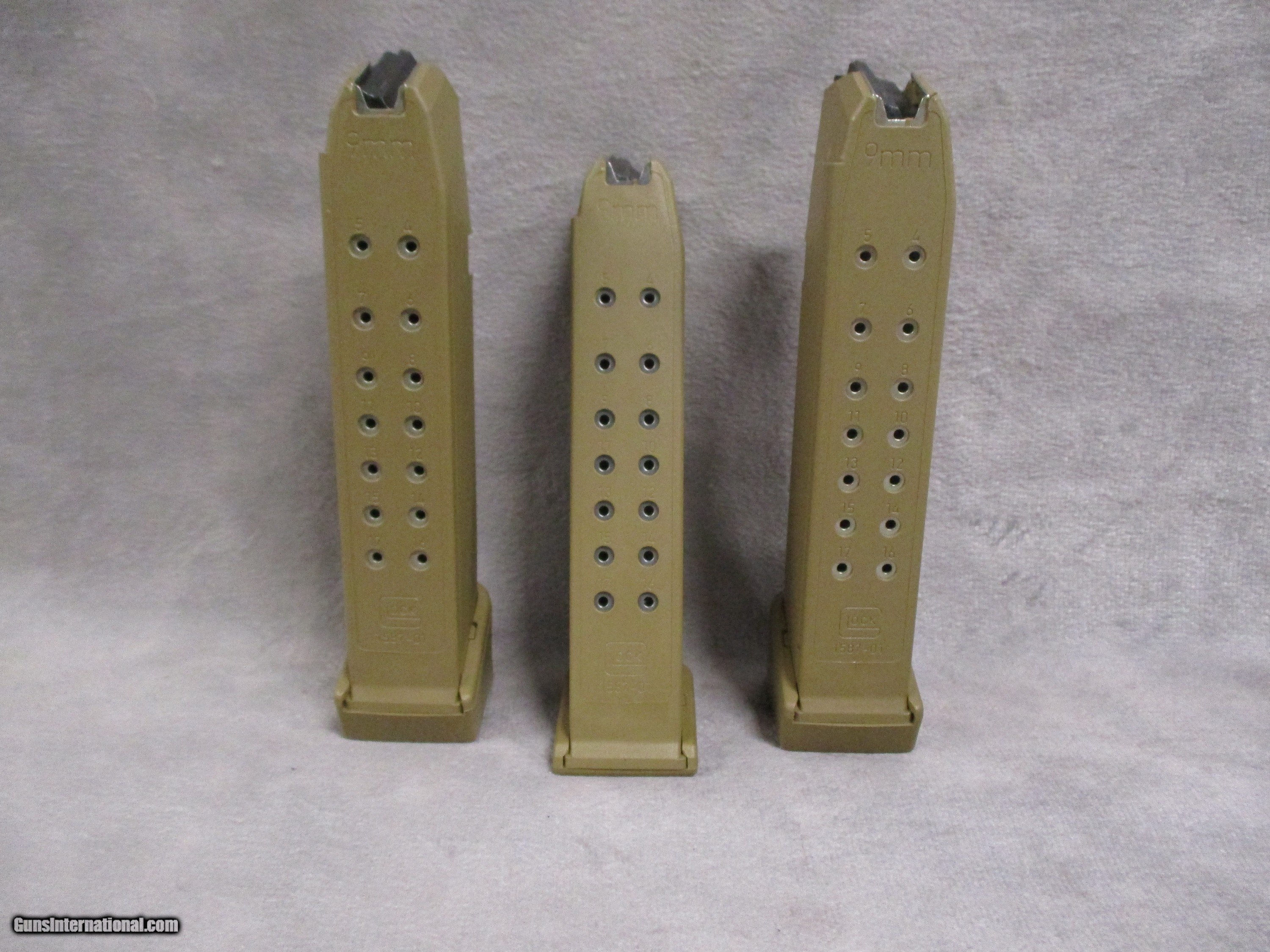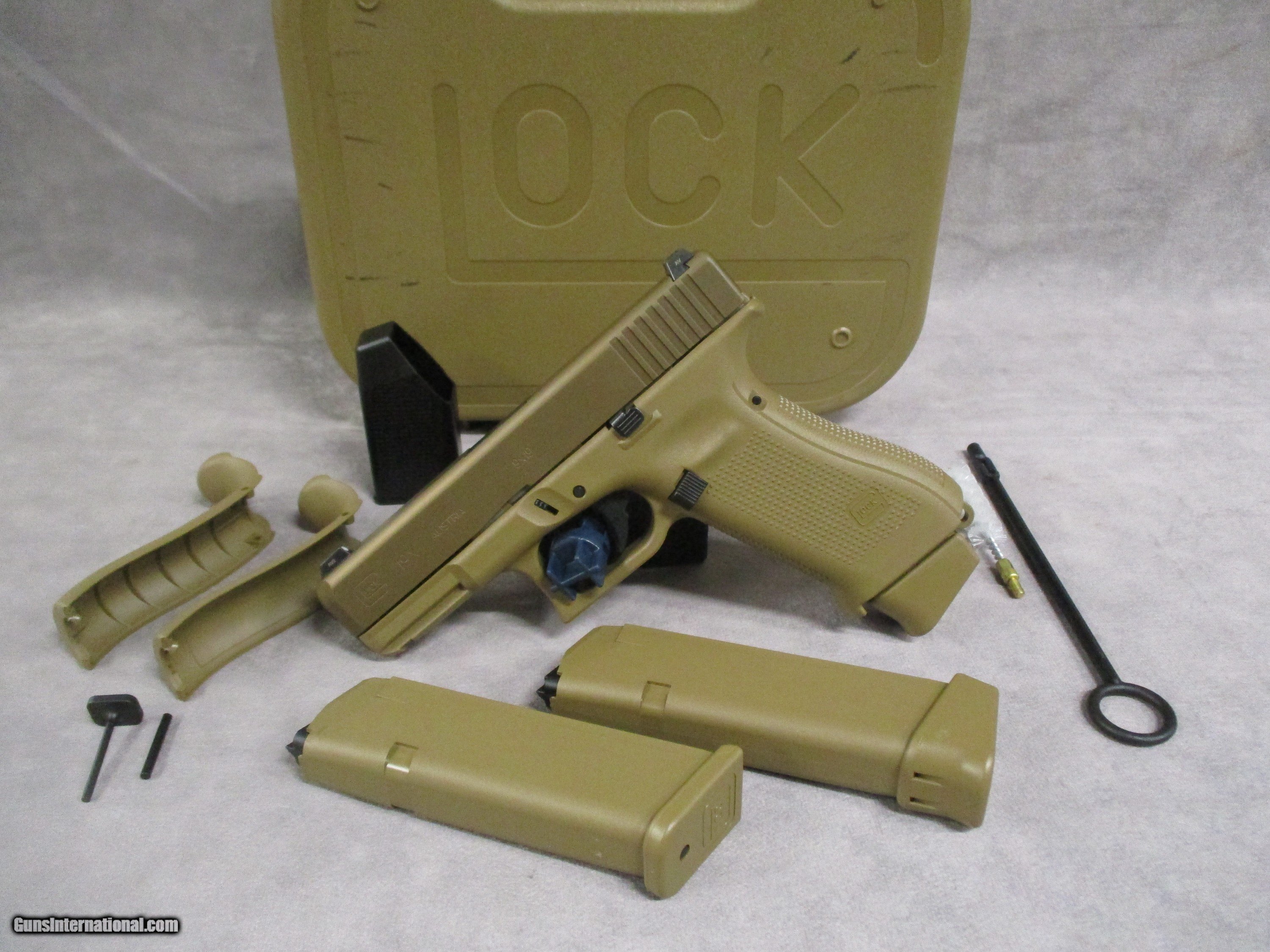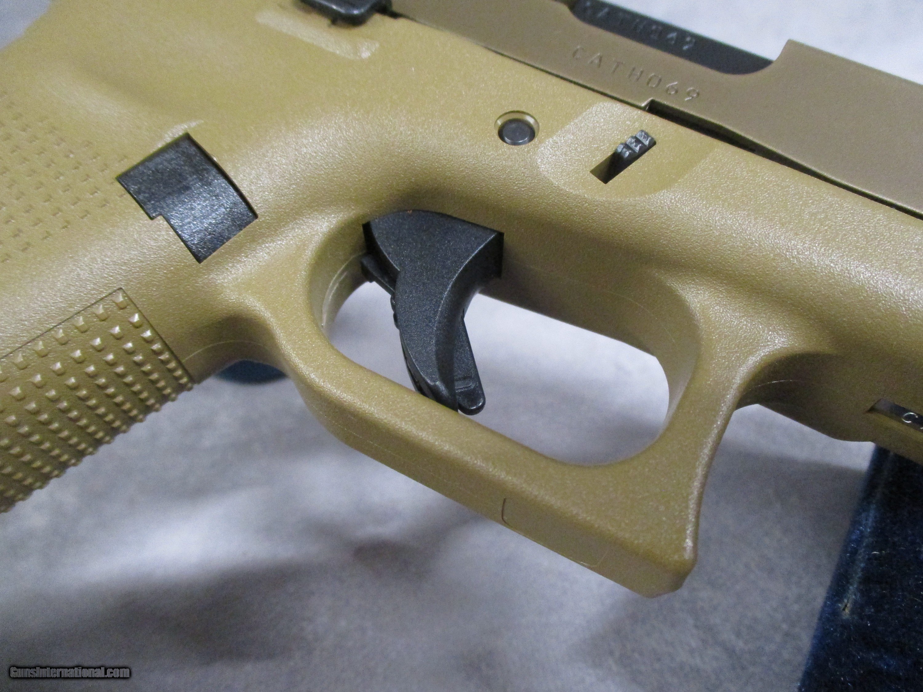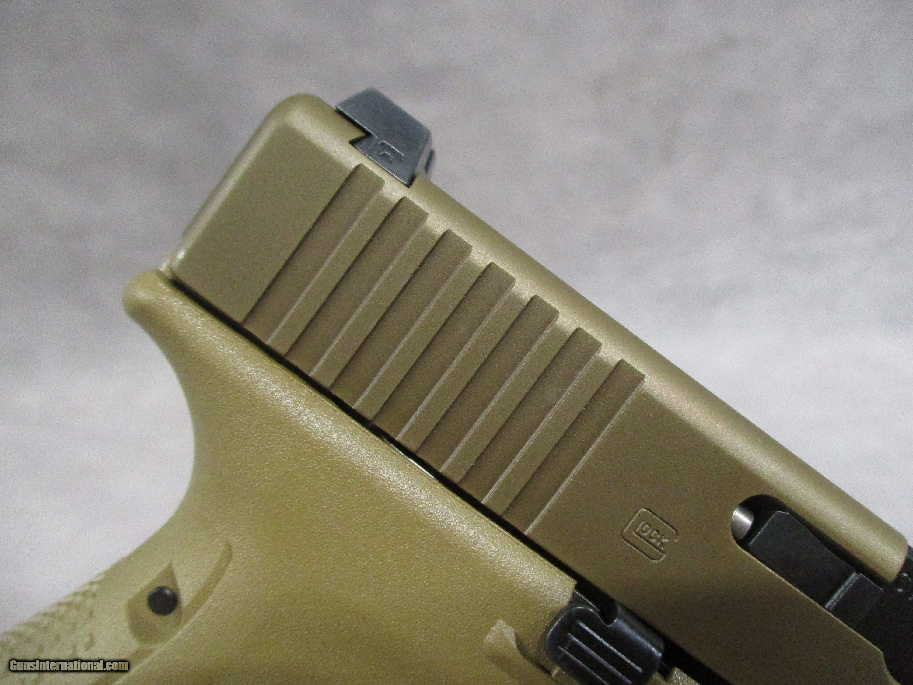Description: The Glock G19X in 9mm has become one of the most popular Glock models in recent years thanks to its involvement in the U.S. Army’s pistol trials, and because it represents the best combination between the G17 and standard G19. It is the G19 slide paired with a slightly modified G17 frame. The G19X was built to be the ideal pistol for all situations and conditions. Although not labeled as such, the G19X is a Gen 5 pistol in all but name. With the Gen 5, additional features have been added over previous gens. These include the Glock Marksman Barrel (GMB) with improved polygonal rifling and target barrel crown, ambidextrous slide stop levers, no finger grooves on the grip frame, and the new nPVD finish which, like the nDLC finish used on other Gen 5 pistols, is more durable than the finish used on previous generations of Glock pistols. The nPVD is unique to the G19X; its coyote color makes the G19X the first-ever factory colored slide. The G19X shown here is brand new in the box and ready to go. Included with the gun and box are the manual, one 17-round magazine, two 19-round magazines, a Glock magazine loading tool, alternate back straps, and cleaning brush and rod. The box has surface marks on one side. Some gun oil and a cloth will clean this up with a little effort. If you are looking for a new duty pistol or a home defense gun, the G19X is an excellent choice. SOLD Handgun Caliber: 9x19mm Parabellum (9mm Luger, 9x19mm NATO) Manufacturer: Glock, G.m.b.H. Model: G19X Serial Number: CATH069 Bore: Hybrid traditional/polygonal rifling, 6 grooves, 1:9.8 inches (1 in 250 mm) RH twist Ejectors: Auto-ejection Condition: New in Box Barrels: Carbon Steel Barrel Type: Tilting Action: Browning short recoil system, striker-fired double action. Triggers: Glock serrated combat trigger, 5.5 lbs. pull weight (according to box label) Stock: Polymer grip frame Fore End: Polymer, picatinny rail equipped Finish: nPVD finish, Coyote tan Weight: 22.05 oz. w/o mag, 24.83 oz. w/empty mag, 31.39 oz. loaded Sights: Glock Night Sights, sight radius 5.94 inches (151 mm) Extras: See description Case: Glock factory box |