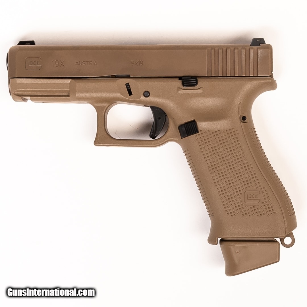Description: Guns Listing ID: 475431 A semi-auto handgun chambered in 9mm, this Glock 19X is a crossover that combines the full-size frame of the G17 Gen 5 with the compact slide with dehorned nose profile of the G19 Gen 5. Other features include a Glock Marksman barrel and corrosion-resistant PVD coating, while the interchangeable grip panels make it easy to find the perfect fit. This handgun features two 19-round magazines, one 17-round magazine, night sights, and the original case with the manual. SOLD Manufacturer: GLOCK Model: G19X Caliber Info: 9MM LUGER Condition: Used - Certified Barrels: 4 BARREL Finish: FDE |