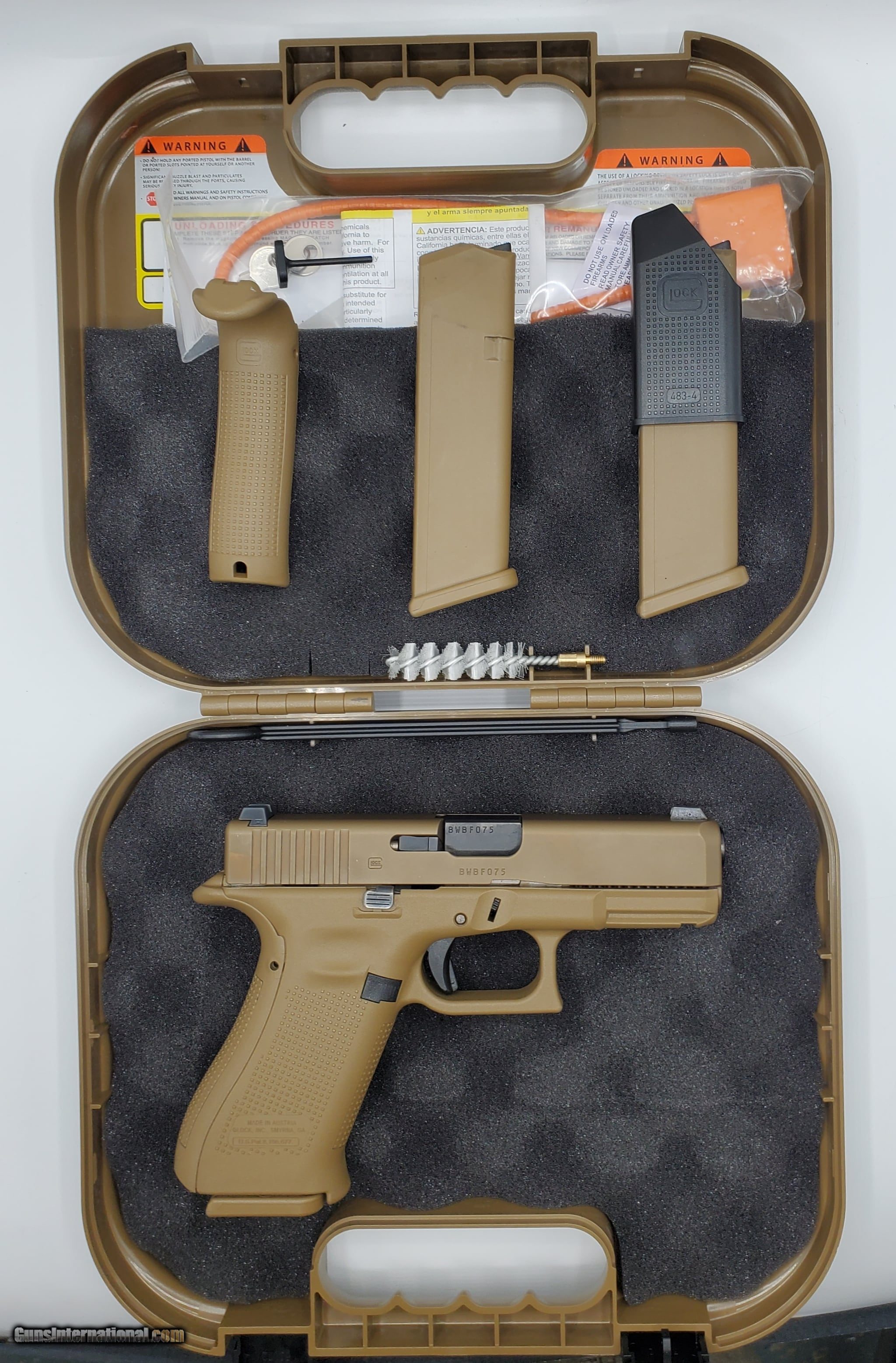 Description: Guns Listing ID: 520612 THIS PISTOL COMES WITH THREE 10 RND MAGS, A SPEED LOADER, A LOCK, AND A HARDCASE. ONE OF THE MAGS IS MISSING A BASE PLATE PIN.(SEE PICS) SOLD Manufacturer: GLOCK Model: G19X Caliber Info: 9MM LUGER Condition: Used - Non-Certified Barrels: 4" barrel |