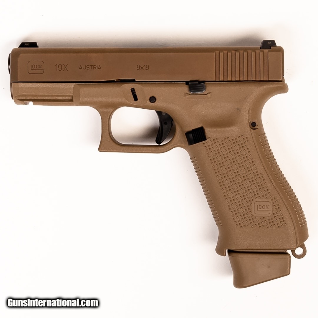 Description: Guns Listing ID: 544986 A semi-auto handgun chambered in 9mm, this Glock 19X is a crossover that combines the full-size frame of the G17 Gen 5 with the compact, dehorned slide nose profile of the G19 Gen 5. Other features include a Glock Marksman barrel and corrosion-resistant nPVD coating, while the interchangeable grip panels make it easy to find the perfect fit. This was Glock‚‚s submission to the U.S. Army‚‚s Modular handgun trials, ultimately losing out to the Sig M17. This handgun features one 17-round magazine, one 19-round magazine, and the orignal case with the manual. SOLD Manufacturer: GLOCK Model: G19X Caliber Info: 9MM LUGER Condition: Used - Certified Barrels: 4 BARREL Finish: FDE |