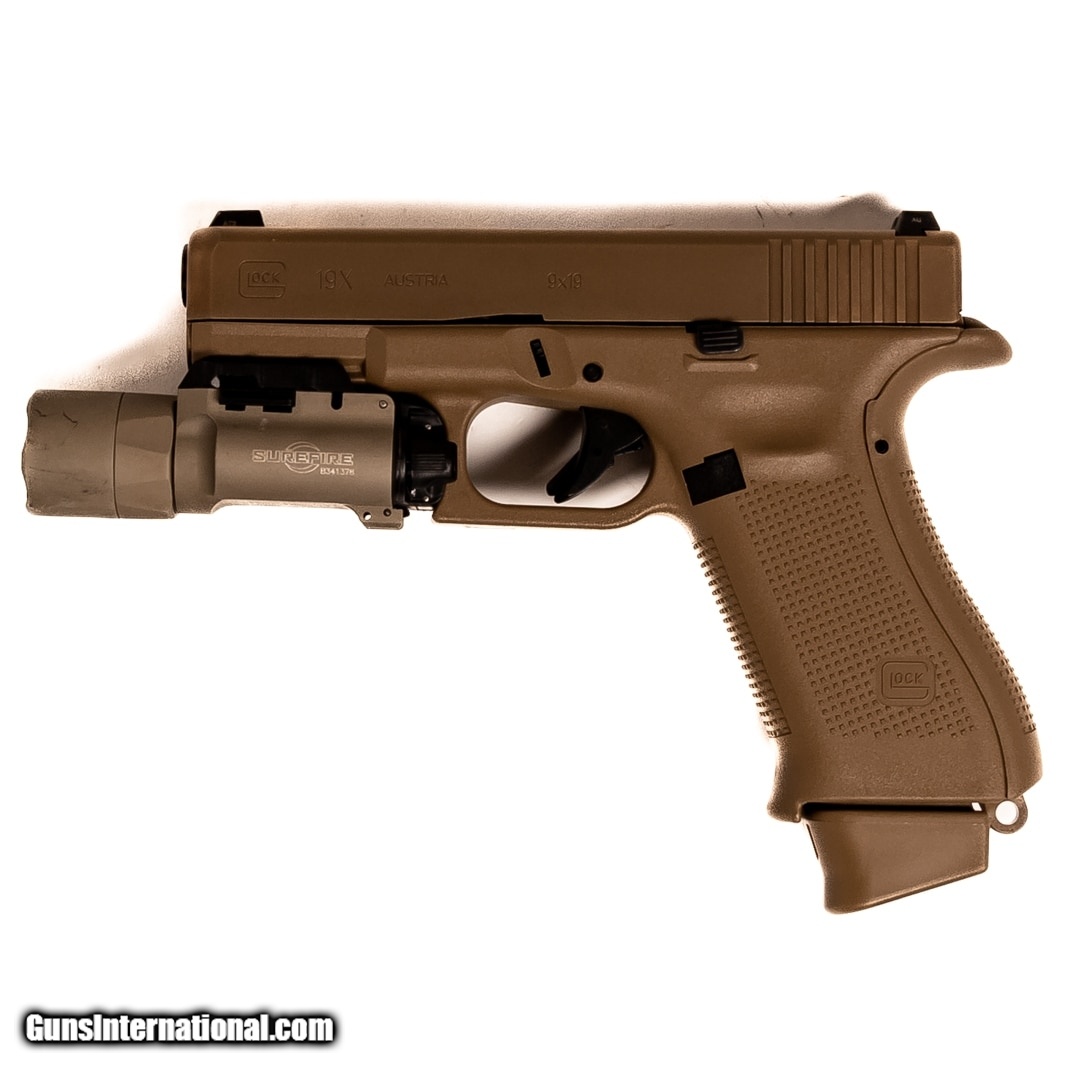 Description: Guns Listing ID: 702692 The G19X is a crossover that combines features from two of Glock‚‚s most popular pistols. Accurate, durable, and reliable, it is built using the full-size polymer frame of the G17 Gen 5 and the slide with dehorned nose profile from the G19 Gen 5. This G19X is equipped with a left-handed mag release, night sights, and a Surefire light. Three 18-round magazines are included. Get the best bang for your buck when you get a Certified Used Firearm . When you see the Certified Used stamp on any of our firearms, you can be confident that you’re getting exactly what you want – a gun only in very good to excellent condition and held to the highest quality standard. All Certified Used Guns come with a ‘no questions asked’ return policy . PLUS, ALL CERTIFIED USED GUNS SHIP FREE SOLD Manufacturer: GLOCK Model: G19X Caliber Info: 9MM LUGER (9X19 PARA) Condition: Used - Certified Barrels: 4 barrel Finish: COYOTE TAN |