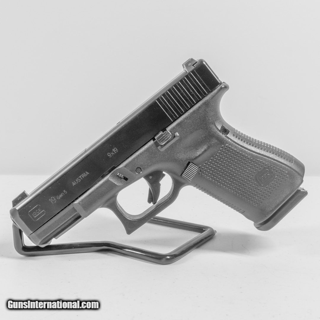 Description: Guns Listing ID: 890382 Manufacturer: Glock Model: G19 Gen5 Condition: Grade 1 Good/Excellent Condition Caliber: 9x19mm Luger Action: Striker Barrel Length: 4.02\" Capacity: 15 • Please be aware that we have not test fired this gun. • All sales are final. Any discrepancies between the gun and our description should be communicated to us prior to the transfer. • Returns will not be accepted after the transfer process has been submitted or completed. • This item is a Police Trade-In or LEO. The gun you receive may vary from the gun featured in photos. This may include the number of mags, boxes/cases, any accessories, bore condition, and cosmetic flaws such as scratches, dents, blemishes, etc. LEO Weapon Grade Guide: Grade 1 The gun is in very good to excellent condition Grade 2 The gun is in good to very good condition Grade 3 The gun is in fair to good condition SOLD Manufacturer: GLOCK Model: LEO G19 Gen5, Grade 1 Caliber Info: 9MM LUGER (9X19 PARA) Condition: Used - Non-Certified Barrels: 4.02 BARREL Finish: BLACK |