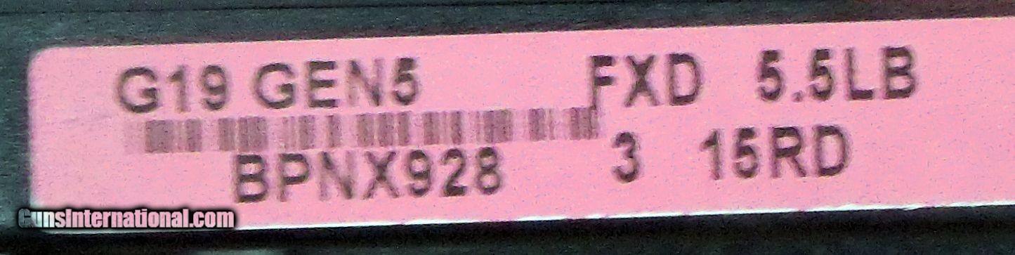 GLOCK Model G19 Gen 5 Pistol, 9mm Cal., with MOS Sight Bases