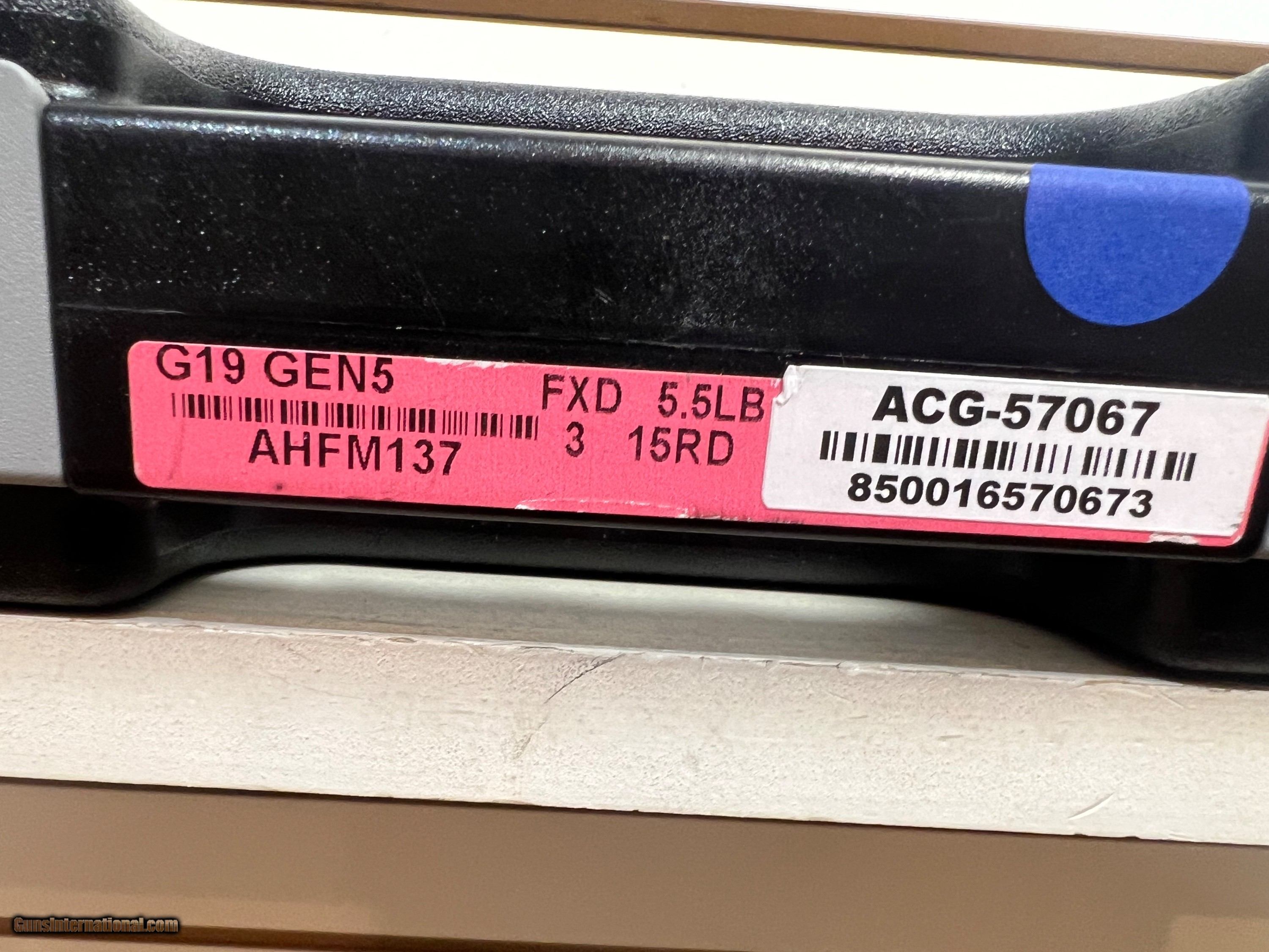new GLK 19G5 9MM 15RD BLK CHRY BLK new in hard plastic case