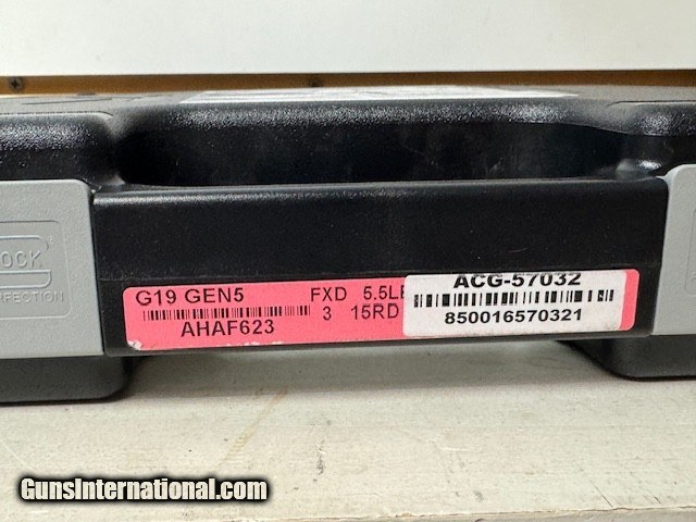 Description: new GLK 19G5 9MM 15RD SA SLIDE 850016570321 (CALIBER:9MM); (MAG CAPACITY:LUGER); (GUN TYPE:PISTOL: SEMI-AUTO); (MODEL SERIES:19); (ACTION:SAFE ACTION); (CAPACITY:15+1); (FINISH:CERAKOTE SATIN ALUMINUM); (STOCK:BLACK POLYMER); (SIGHTS:FT: WHITE DOT RR: WHITE OUTLINE); (BARREL LENGTH:4.02); (OVERALL LENGTH:6.85); (FEATURES:APOLLO CUSTOM EDITION); (DEPT:HANDGUN) Buyer pays shipping Millers Gun Center Located in New Castle, Delaware "Home of TAX-Free shopping" No Credit Card Fees Send Gun international inquiry and then call 302-328-9747 to complete your purchase SOLD Serial Number: AHAF623 |