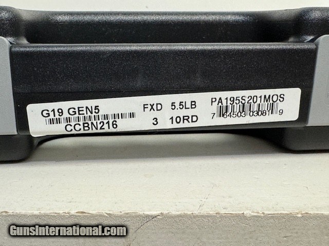 Description: new GLK 19G5 9MM PST 10RD FSS MOS 3 mags load assist tool new in hardcase (CALIBER:9MM); (MAG CAPACITY:10+1); (MODEL SERIES:19); (CAPACITY:10+1); (FINISH:BLACK MATTE); (SIGHTS:FT: WHITE DOT RR: WHITE OUTLINE); (OVERALL LENGTH:7.28); (FEATURES:INCLUDES ADAPTER PLATES TO MOUNT POPULAR OPTICS); (GUN TYPE:PISTOL: SEMI-AUTO); (ACTION:SAFE ACTION); (BARREL LENGTH:4.02); (DEPT:HANDGUN) Buyer pays shipping Millers Gun Center Located in New Castle, Delaware "Home of TAX-Free shopping" No Credit Card Fees Send Gun international inquiry and then call 302-328-9747 to complete your purchase SOLD Serial Number: L28407 |