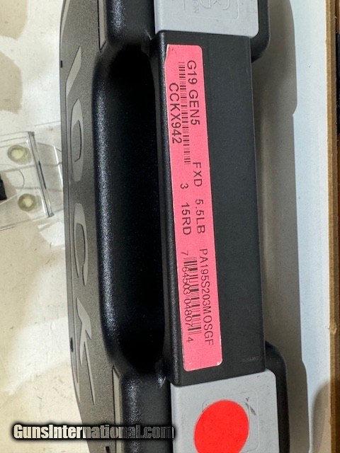 new Glock 19 Gen 5 MOS 9mm PA195S203MOSGF new in box 3 mags hard case
