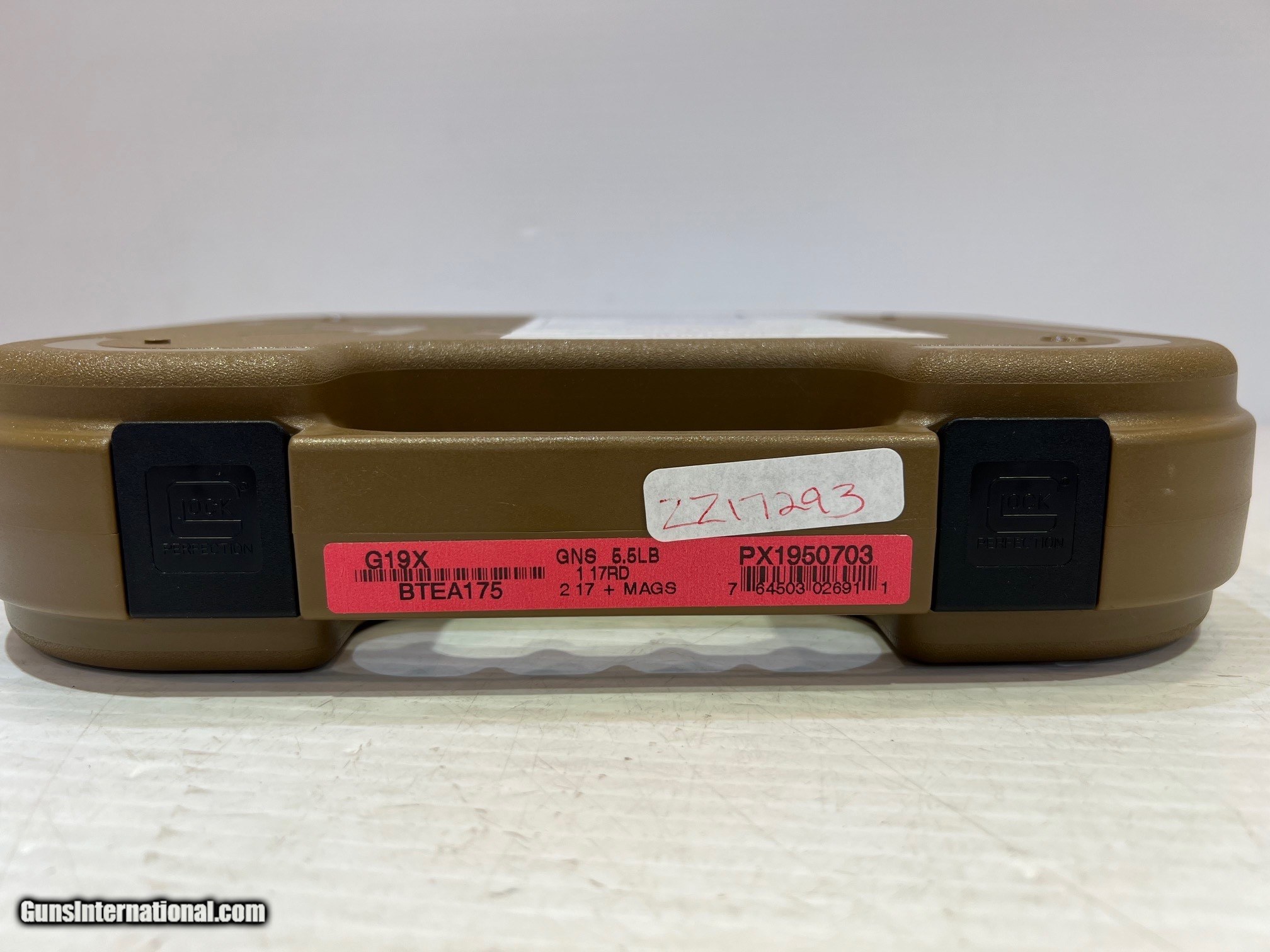 Description: New Glock 19x 9mm, Semi-Auto Pistol, 4" Barrel Tan Frame and Slide, With 3 Tan 17-round Magazines, With Box. WE DO NOT SHIP INTERNATIONALLY $30 Shipping. Pictures are of the item listed. Must be shipped to an FFL holder. The item is on display at our shop but will be taken off the shelf once the starting is met. Please feel free to contact us directly. Three-day inspection from date items arrives at your FFL. Payment may be personal or cashier's check, money order, or credit card "3% surcharge for credit card". QUESTIONS? CALL/TEXT STEVE AT 580.327.7372 SOLD Handgun Caliber: 9x19mm Parabellum (9mm Luger, 9x19mm NATO) Serial Number: BTEA174 zz17293 |