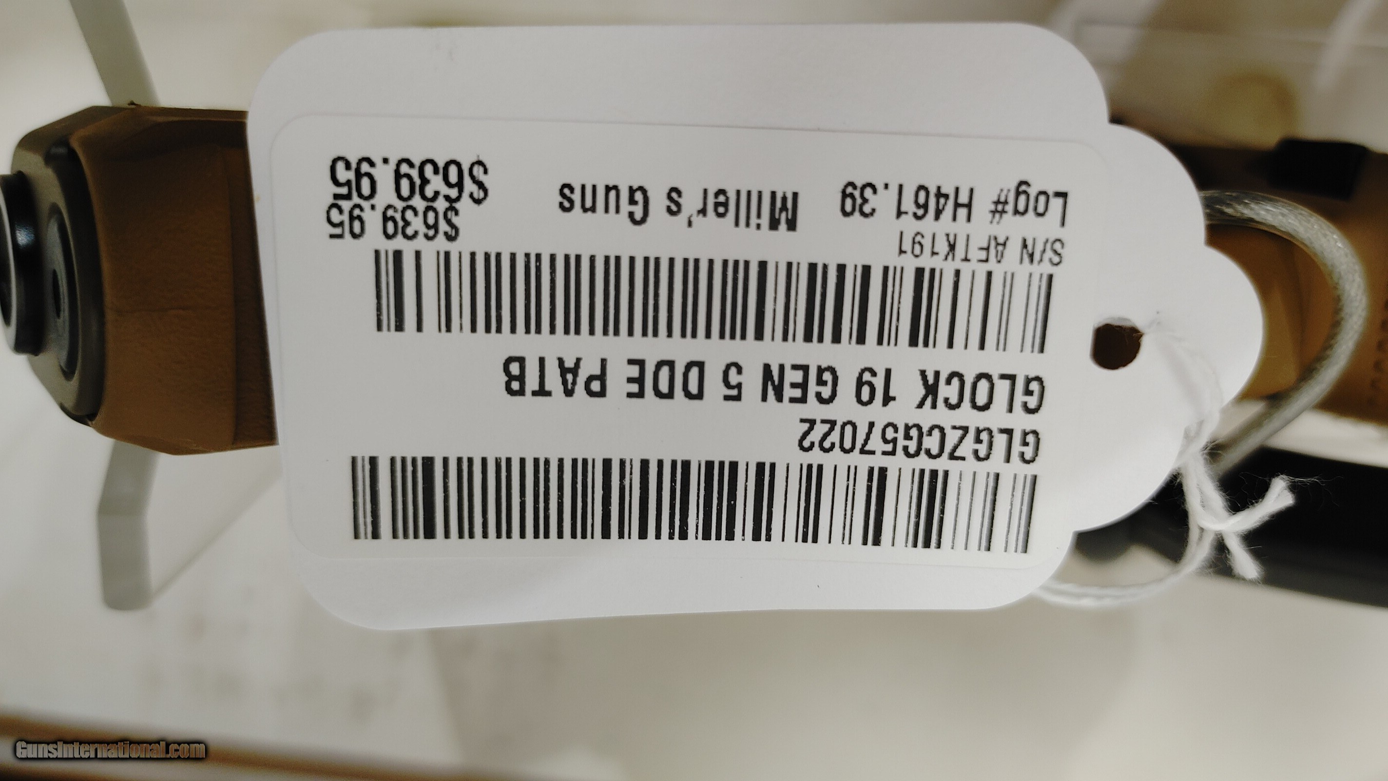 new Glock Gen 5 19 Davidsons Dark Earth Patriot Brown 9mm ACG-57022 in hard plastic case