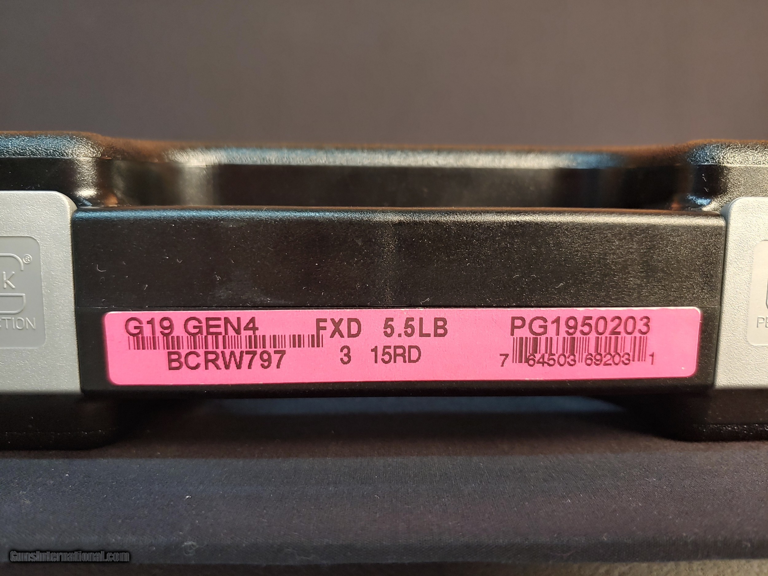 SOLD Manufacturer: Glock Model: G19 Gen 4 (UPC: 764503692031) Caliber Info: 9mm Condition: Pre-Owned Barrels: 4 Action: Double Item Location: Richmond, RI |