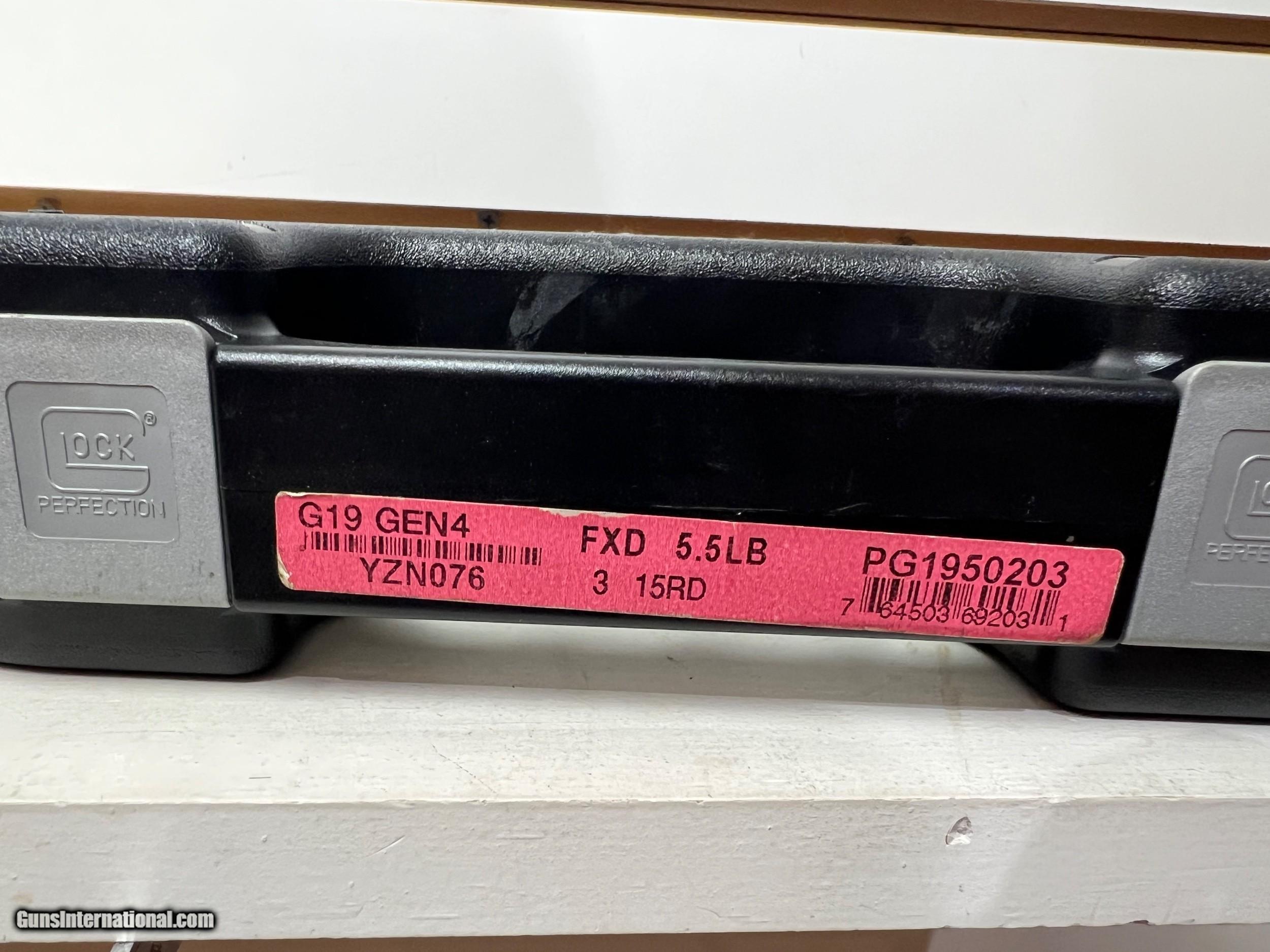 Description: used GLK 19 GEN4 9MM PST 15RD FS 3 mags load assist tool box lock dummy rounds good condition (CALIBER:9MM); (MAG CAPACITY:15+1); (MODEL SERIES:19); (CAPACITY:15+1); (FINISH:BLACK MATTE); (SIGHTS:FT: WHITE DOT RR: WHITE OUTLINE); (OVERALL LENGTH:6.85); (FEATURES:MAGAZINE LOADER/ CLEANING ROD AND BRUSH); (GUN TYPE:PISTOL: SEMI-AUTO); (ACTION:SAFE ACTION); (BARREL LENGTH:4.02); (DEPT:HANDGUN) Buyer pays shipping Millers Gun Center Located in New Castle, Delaware "Home of TAX-Free shopping" No Credit Card Fees Send Gun international inquiry and then call 302-328-9747 to complete your purchase SOLD Serial Number: YZN076 |